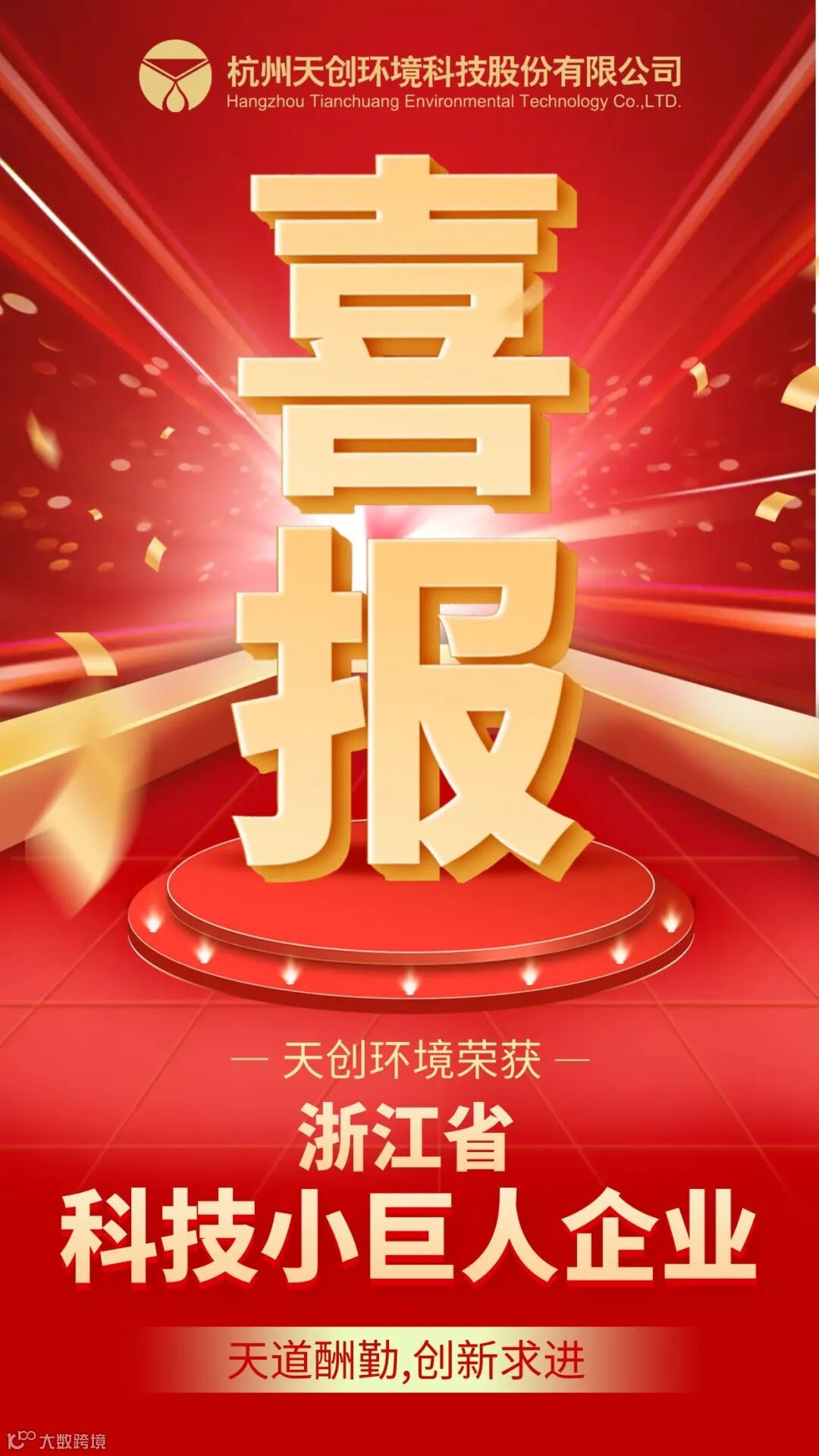为进一步强化企业科技创新主体地位,培育一批创新能力卓越的科技型骨干企业,根据《浙江省科学技术厅关于印发〈浙江省科技小巨人企业管理办法(试行)〉〈浙江省科技领军企业管理办法〉的通知》(浙科发高〔2022〕34号),经企业自主申报、市县科技部门审核推荐、省科技厅综合评审,认定杭州天创环境科技股份有限公司为2023年度“浙江省科技小巨人“企业。