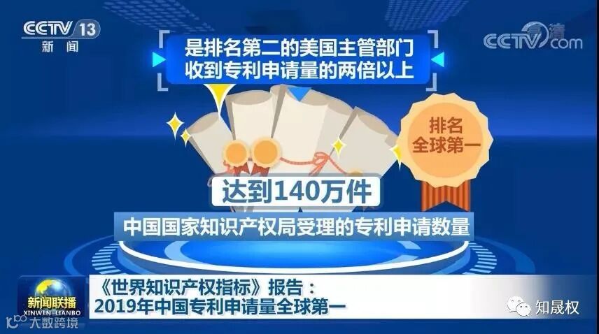 世界知识产权组织(12月7日)发布《世界知识产权指标》年度报告。报告显示,2019年全球专利申请量超过322万件,较前一年下降3%,为10年来首次下降。其中,中国国家知识产权局受理的专利申请数量达到140万件,排名全球第一,这一数字是排名第二的美国主管部门收到专利申请量的两倍以上。