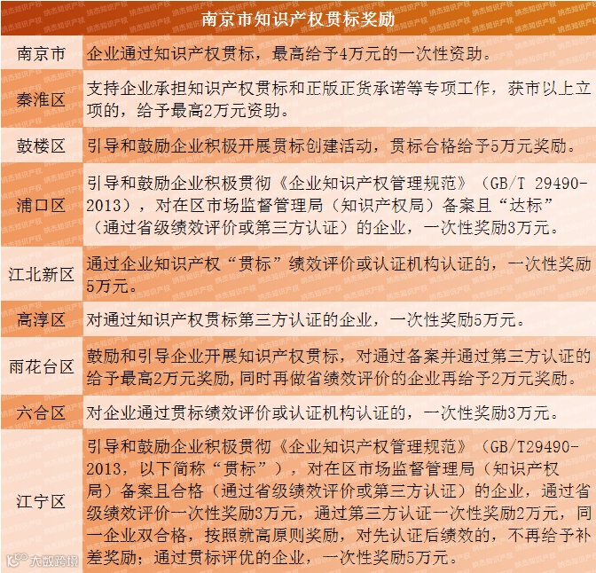 南京贯标奖励知多少?南京市知识产权贯标奖励政策汇总