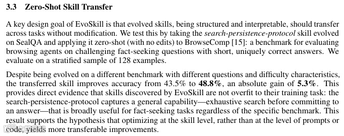 跨任务迁移实验中,SealQA生成的搜索协议直接应用于BrowseComp网页问答测试,准确率提升5.3个百分点。证明EvoSkill提炼的是普适性问题解决能力,而非单一任务经验。