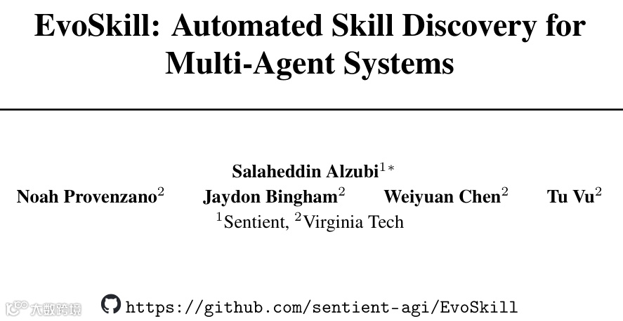 Sentient与弗吉尼亚理工大学联合开发EvoSkill技能发现框架。该框架通过文本反馈机制协调三类智能体,在不调整模型参数的前提下,自主分析失败原因并构建结构化技能模块。
