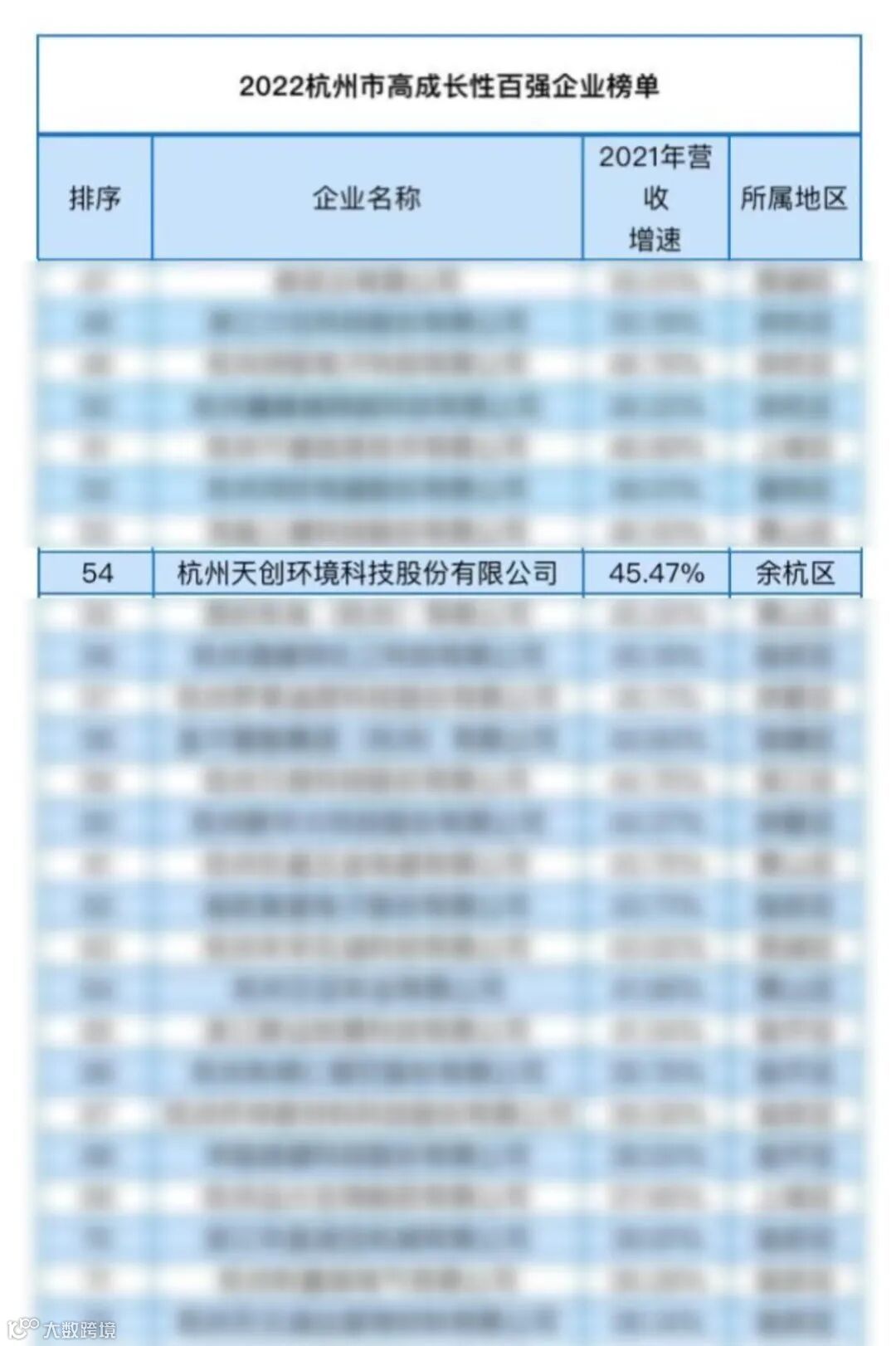 在中华人民共和国成立73周年之际,天创环境成功获评2022杭州市高成长性百强企业榜单.
