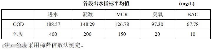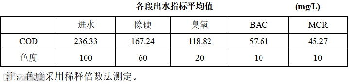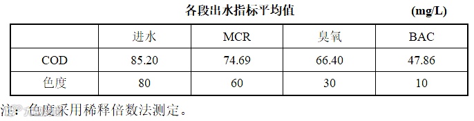 该工艺用于某煤化工企业废水深度处理,产水作为反渗透回用系统的进水。经过该工艺处理后的水质如下:
