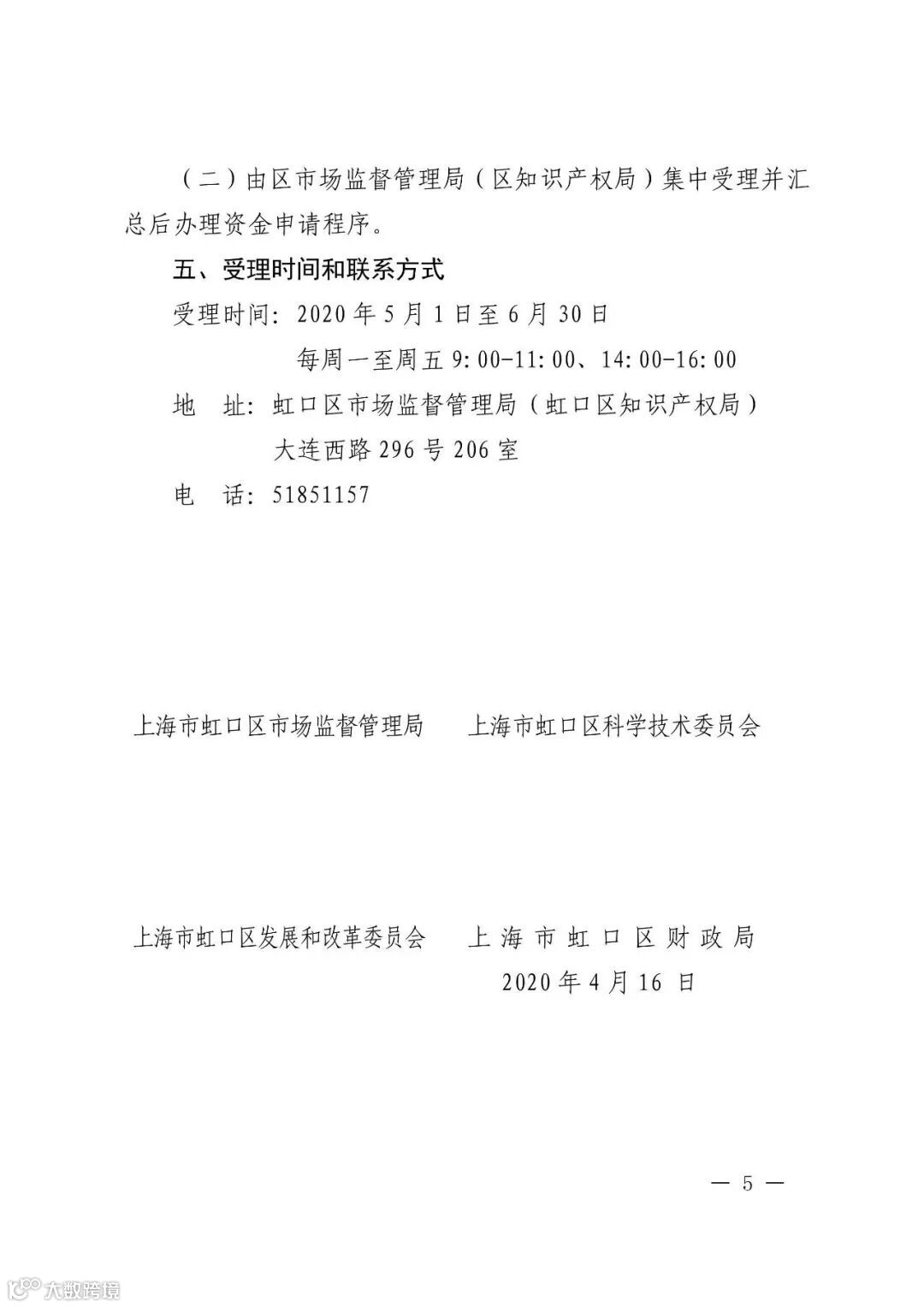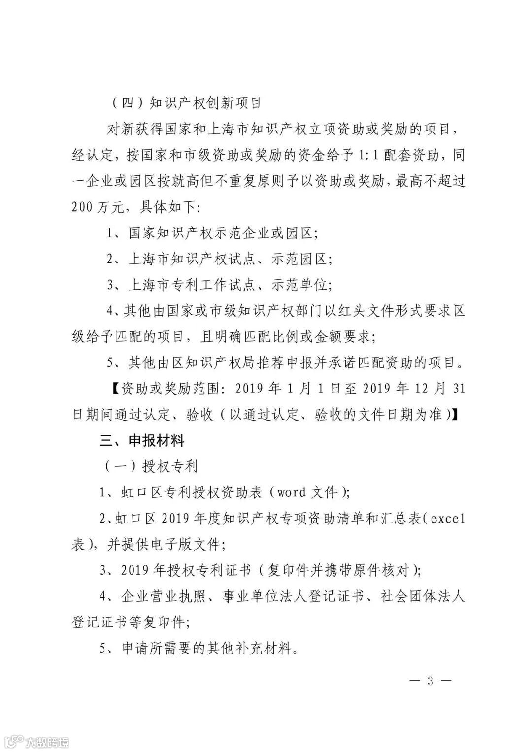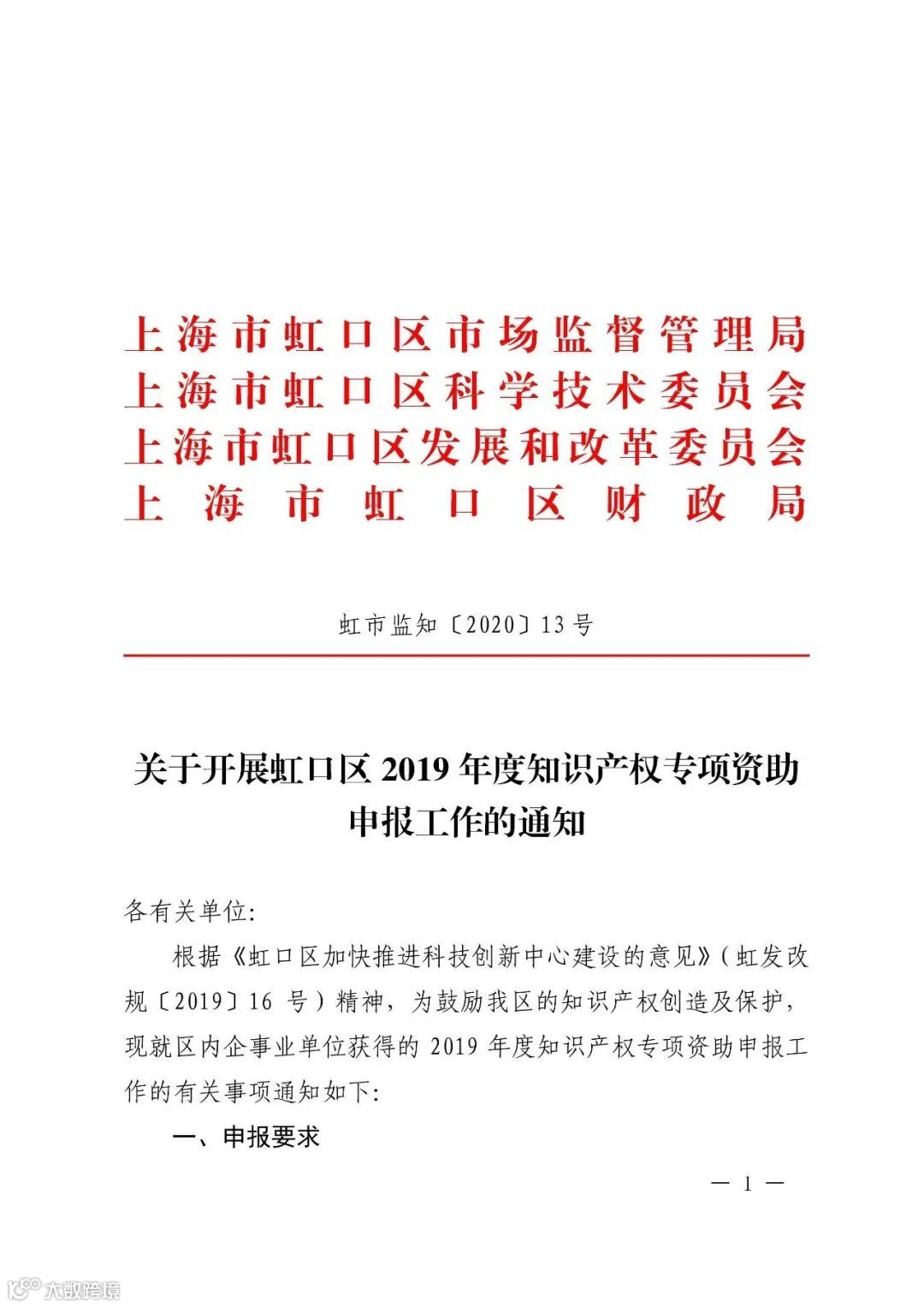 关于申报2019年上海市虹口区专利资助及商标注册奖励的通知