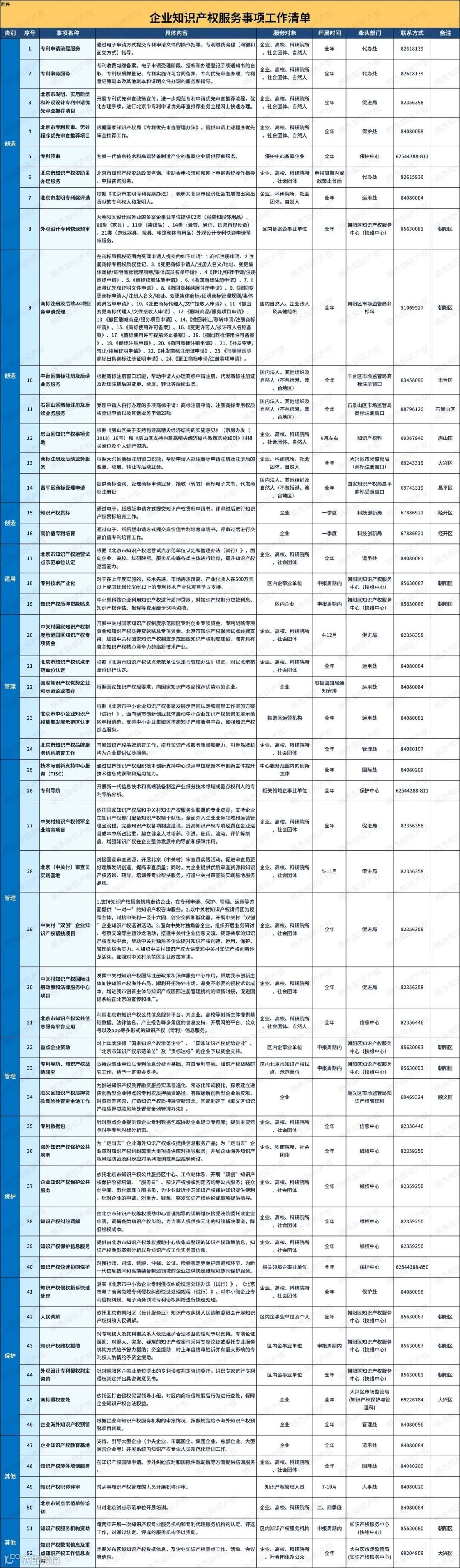 为切实满足创新主体知识产权发展需求,发挥知识产权助力企业发展的目标,北京市知识产权局对市区两级知识产权服务事项进行汇总梳理,形成《企业知识产权服务事项工作清单》,现予以发布。