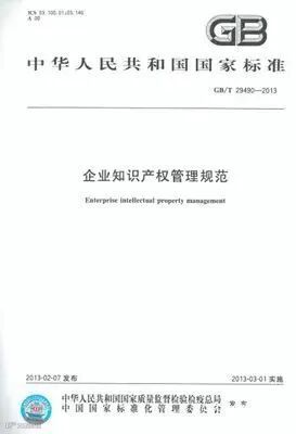 GB/T 29490-2013《企业知识产权管理规范》是由中华人民共和国国家质量监督检验检疫总局和中国国家标准化管理委员会2013年2月7日发布,2013年3月1日正式实施的推荐性国家标准。