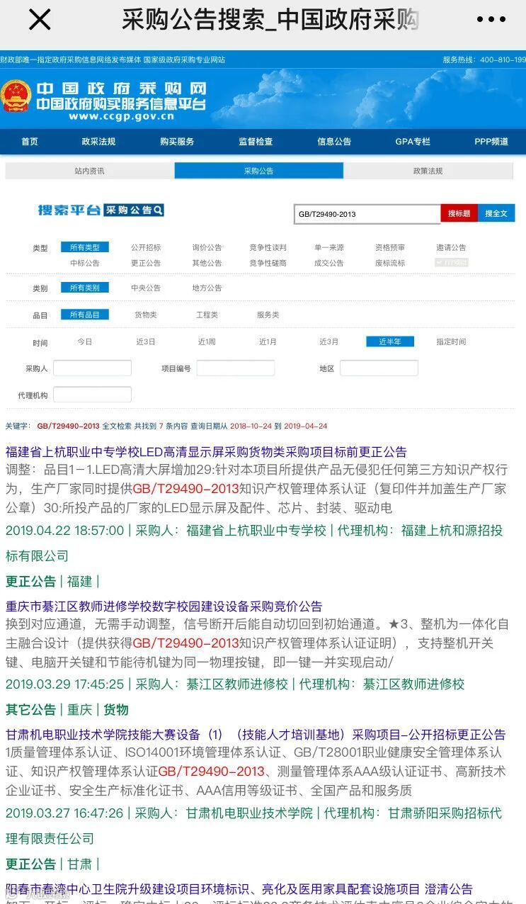 苏州市沧浪中学校招标要求之一:产品生产厂家获得GB/T29490-2013知识产权管理体系认证,3分。