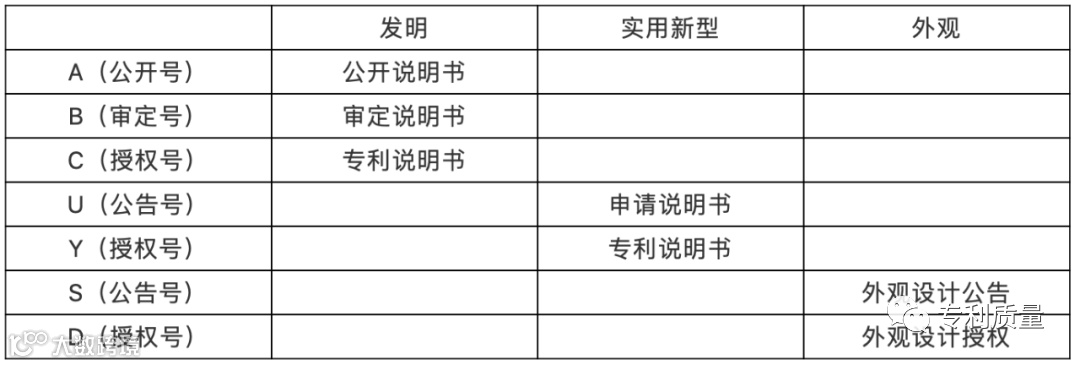 发明专利审定号、授权公告号采用同一编号、实用新型专利公告号、授权公告号也采用同一编号,后面用代码标识。1993后发明专利取消审定号,实用新型及外观设计取消公告号。