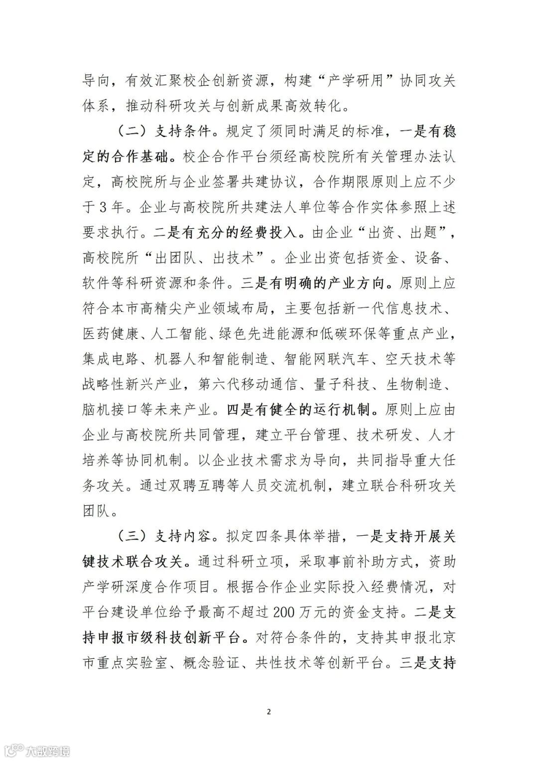 2.关于《北京市支持校企合作平台建设工作措施(征求意见稿)》的起草说明