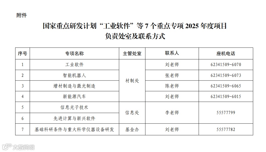 本批指南共发布7个重点专项,具体专项的负责处室及联系人员详见附件。