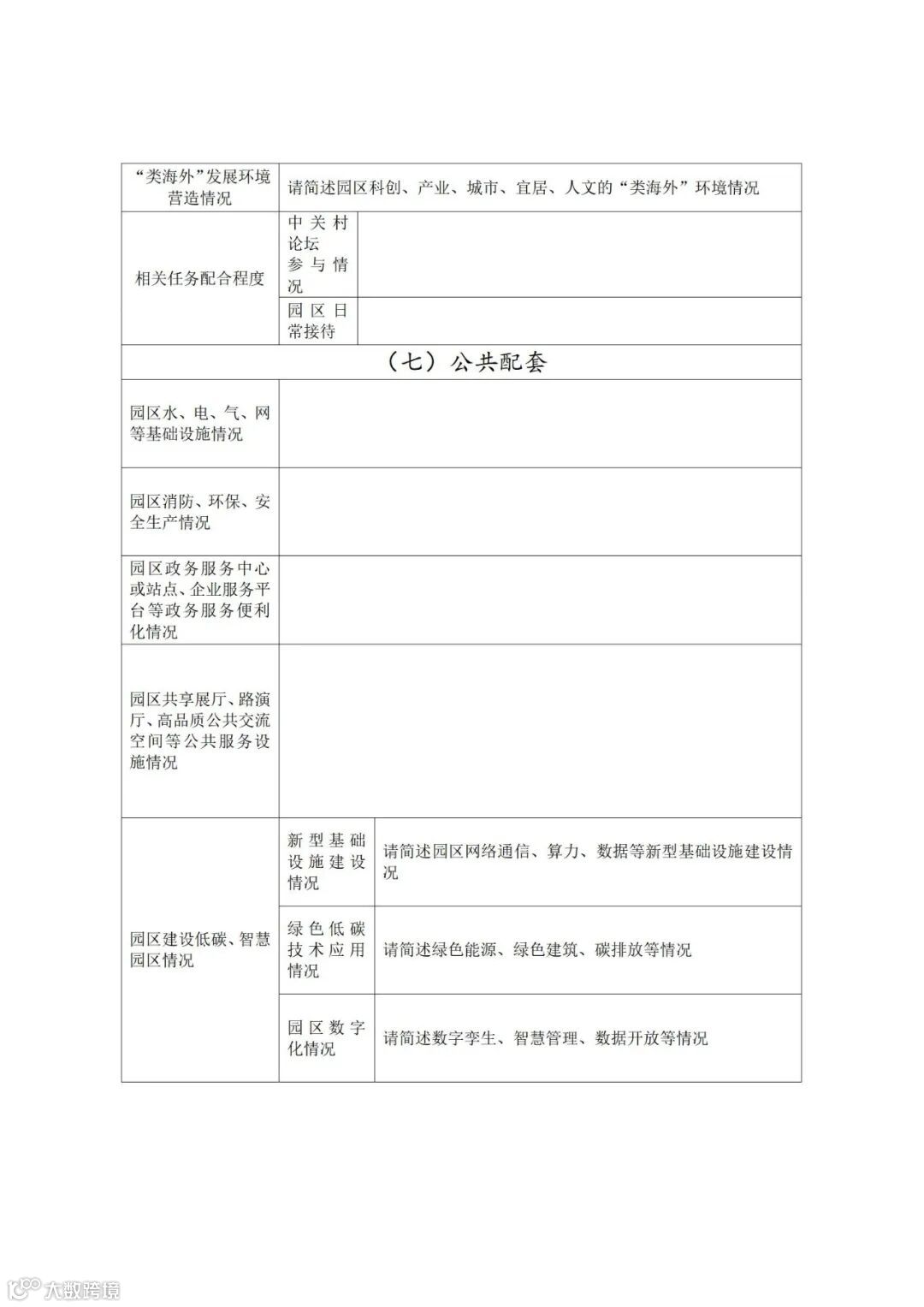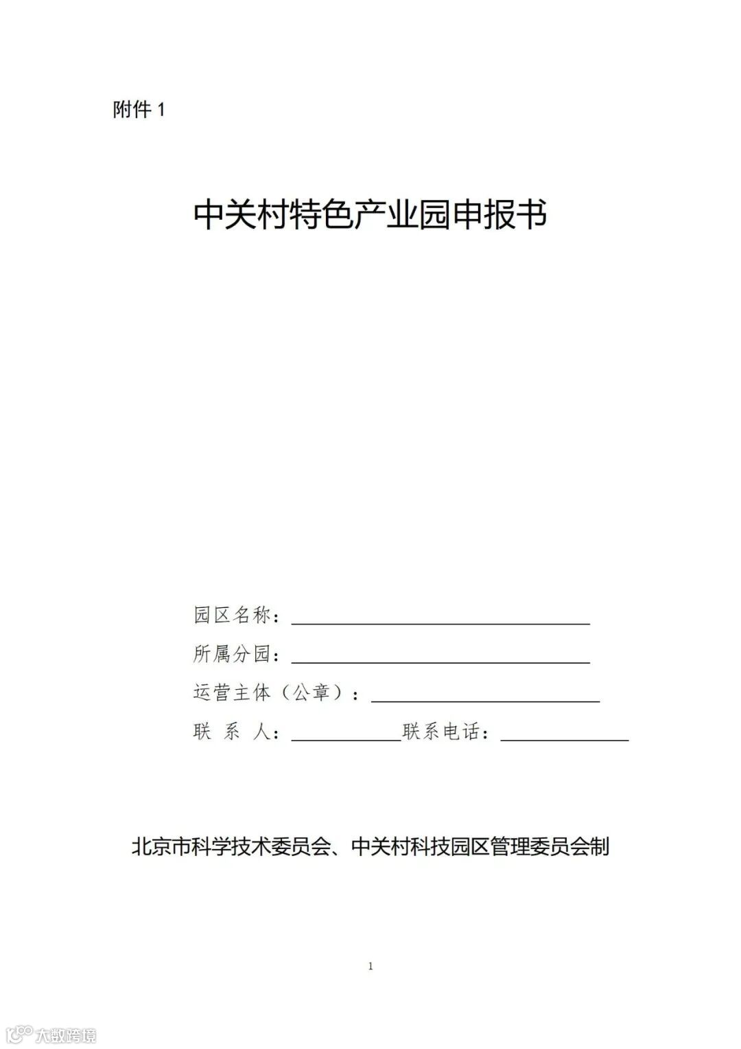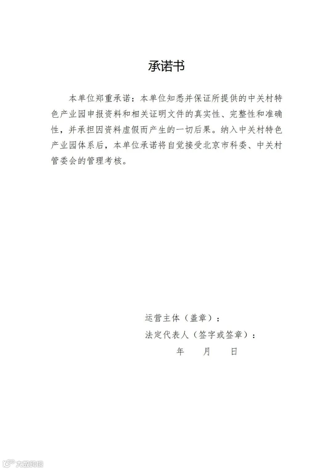 (一)《中关村特色产业园申报书》(以下简称“申报书”)。