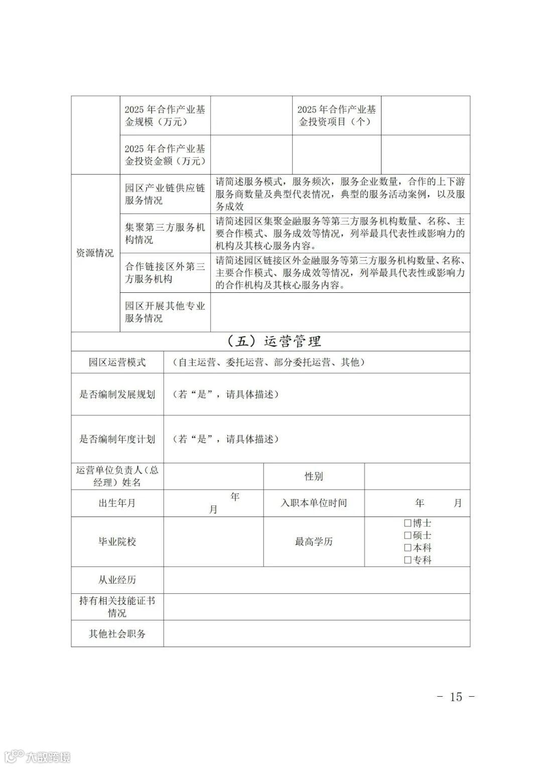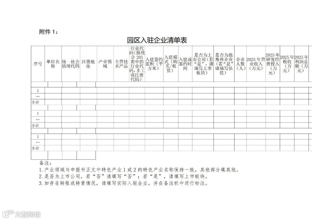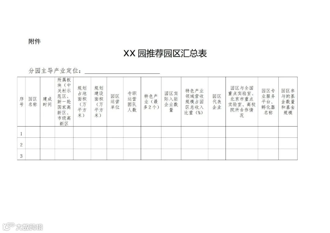 (一)《中关村特色产业园申报书》(以下简称“申报书”)。