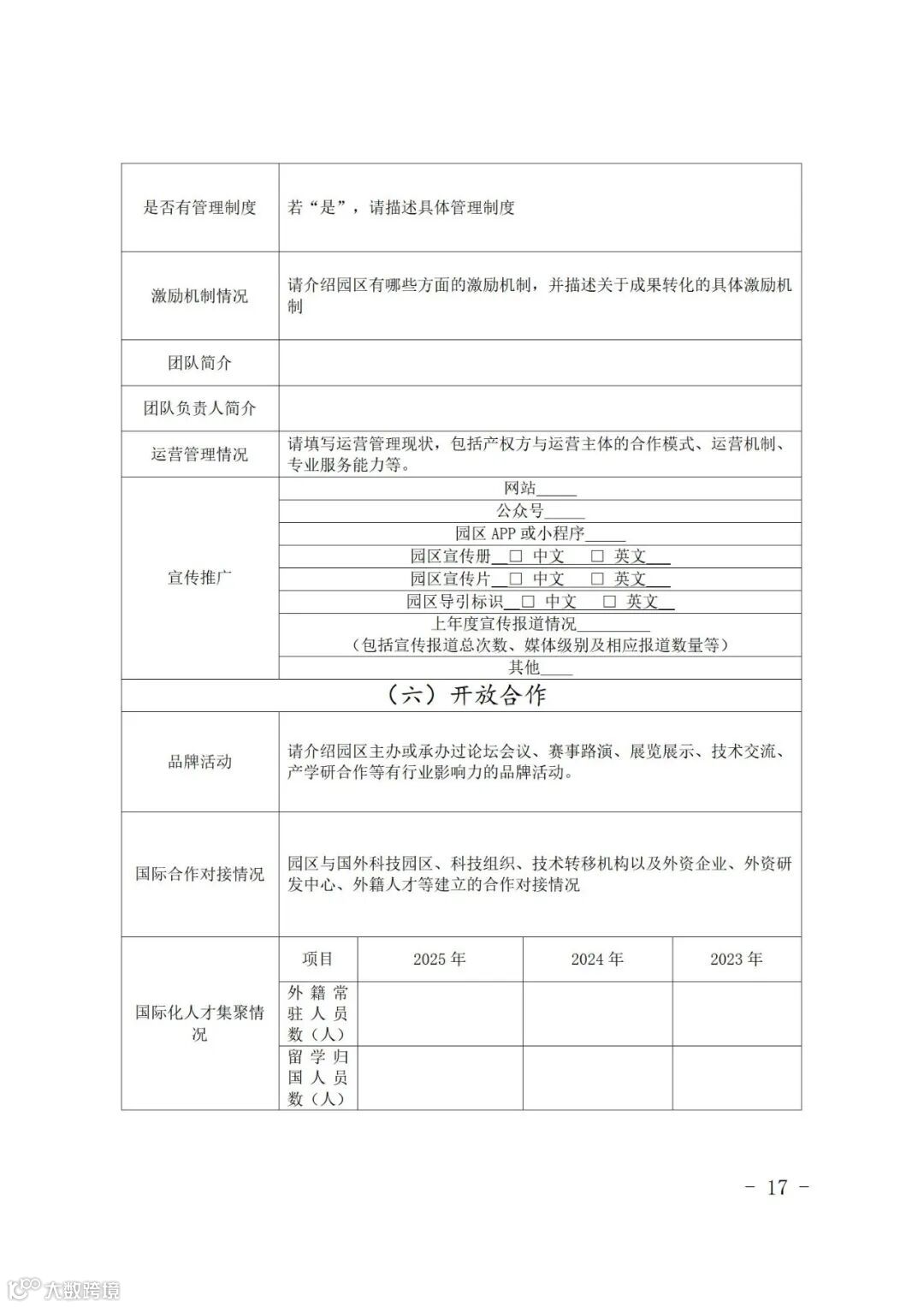6.开放合作:应主办或承办过论坛会议、赛事路演、展览展示、技术交流、产学研合作等有行业影响力的品牌活动,或已与国内外科技园区、科技组织、技术转移机构以及外资企业、外资研发中心、外籍人才等建立合作对接关系,能够发挥平台枢纽作用,链接全球创新资源,提升国际化发展水平。