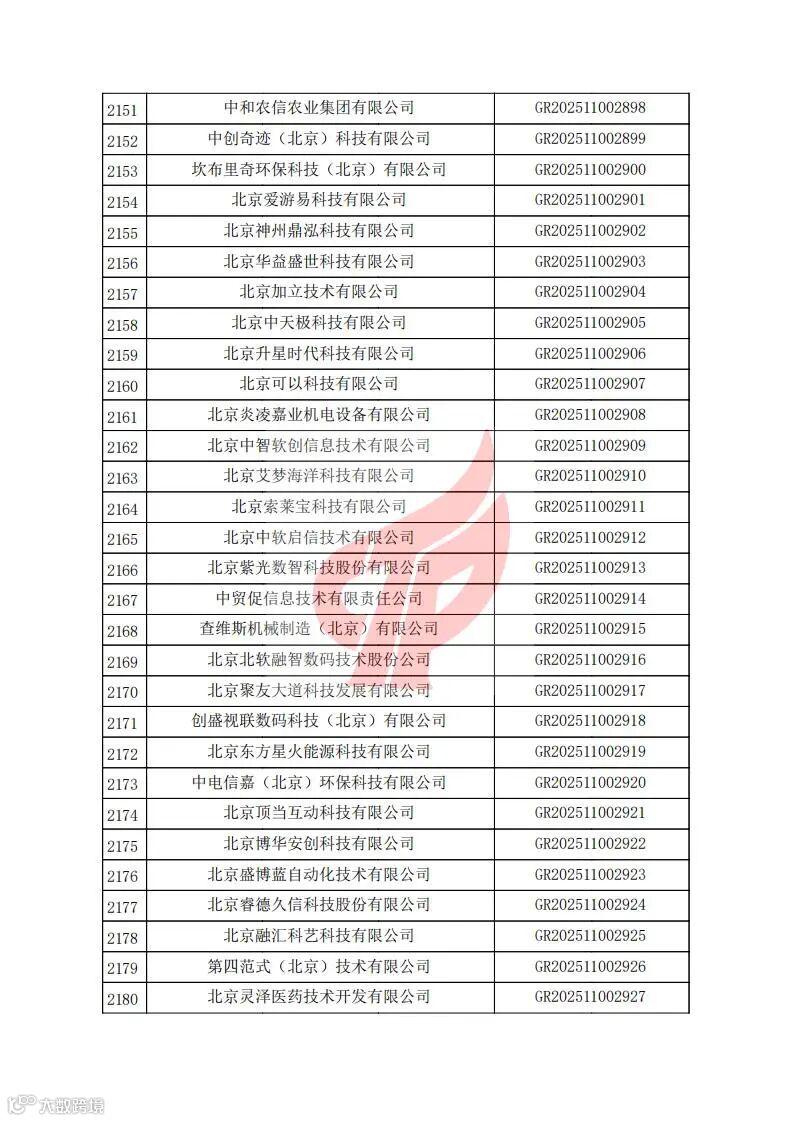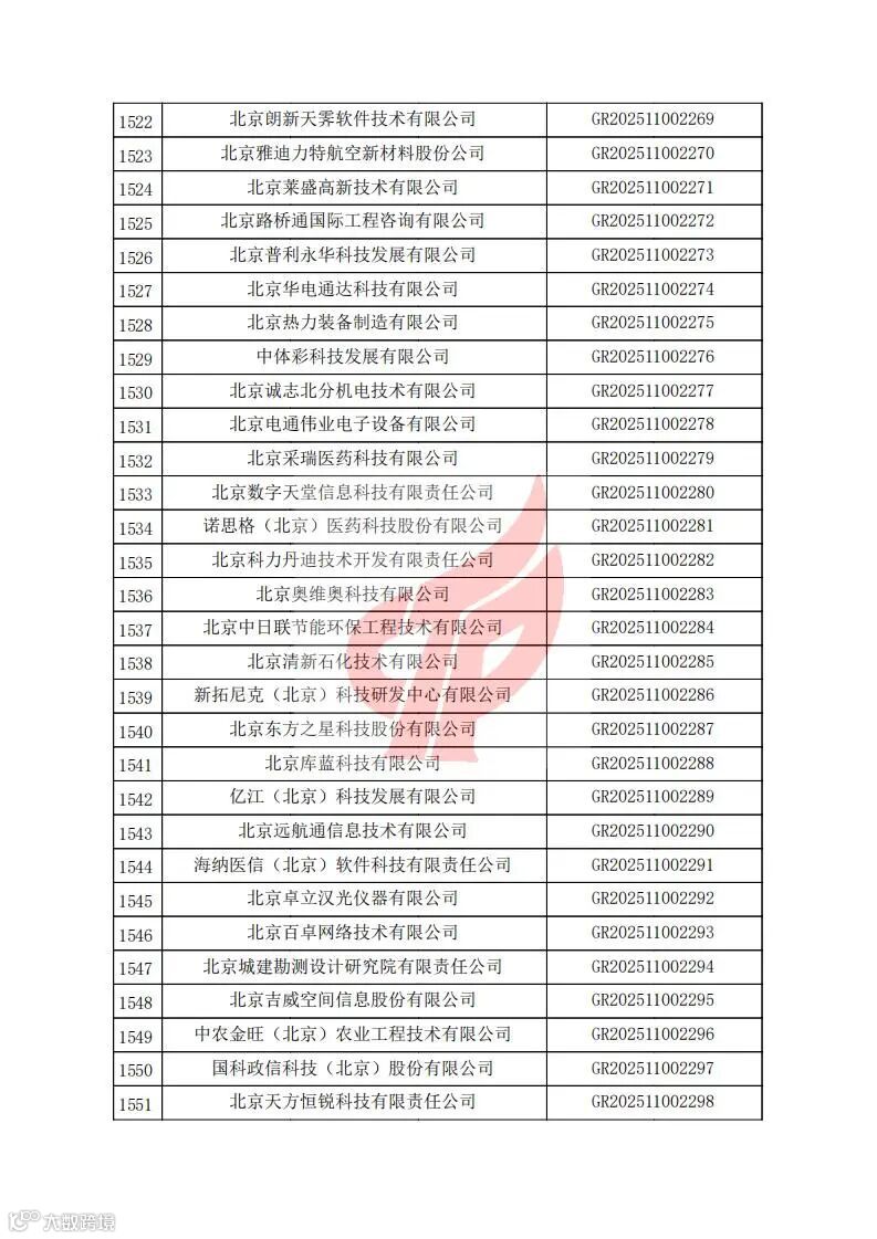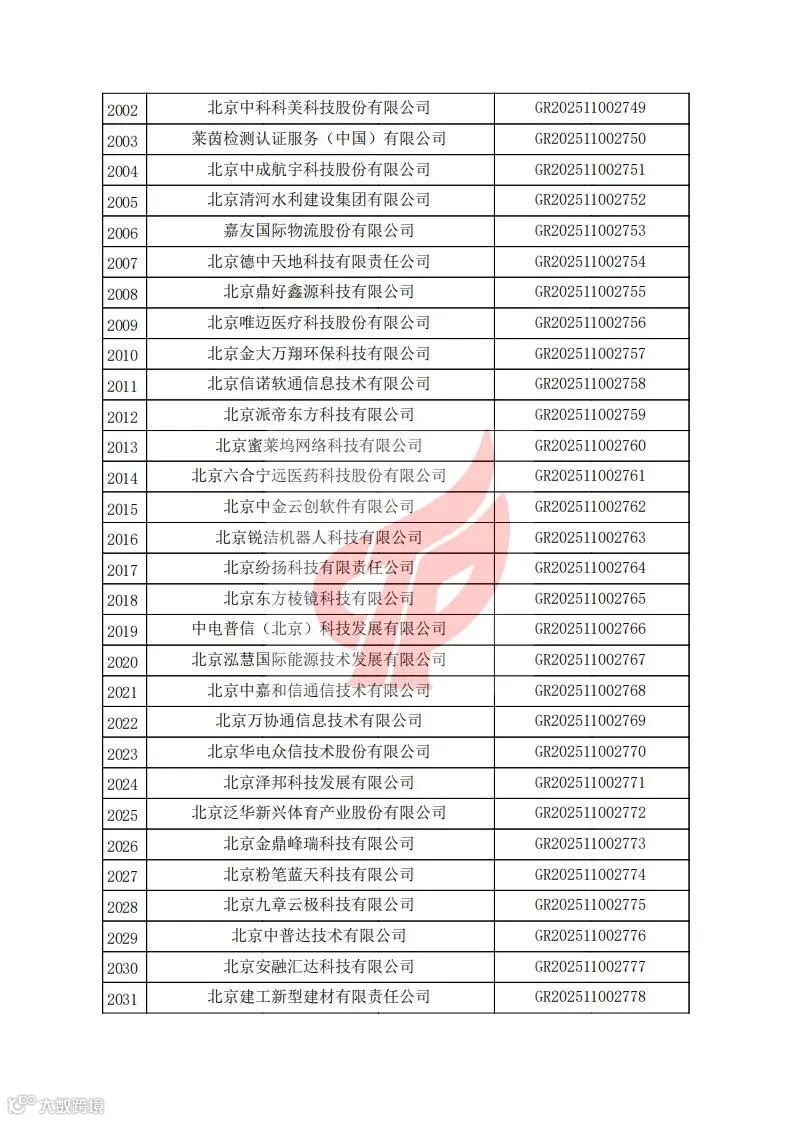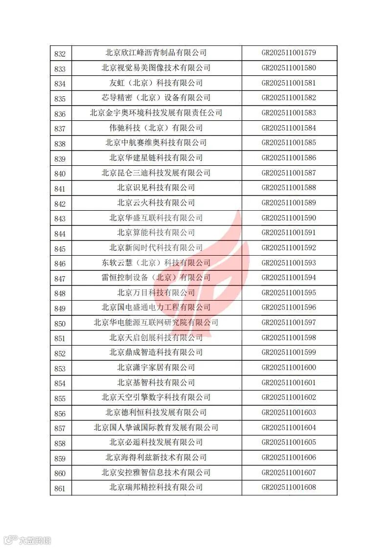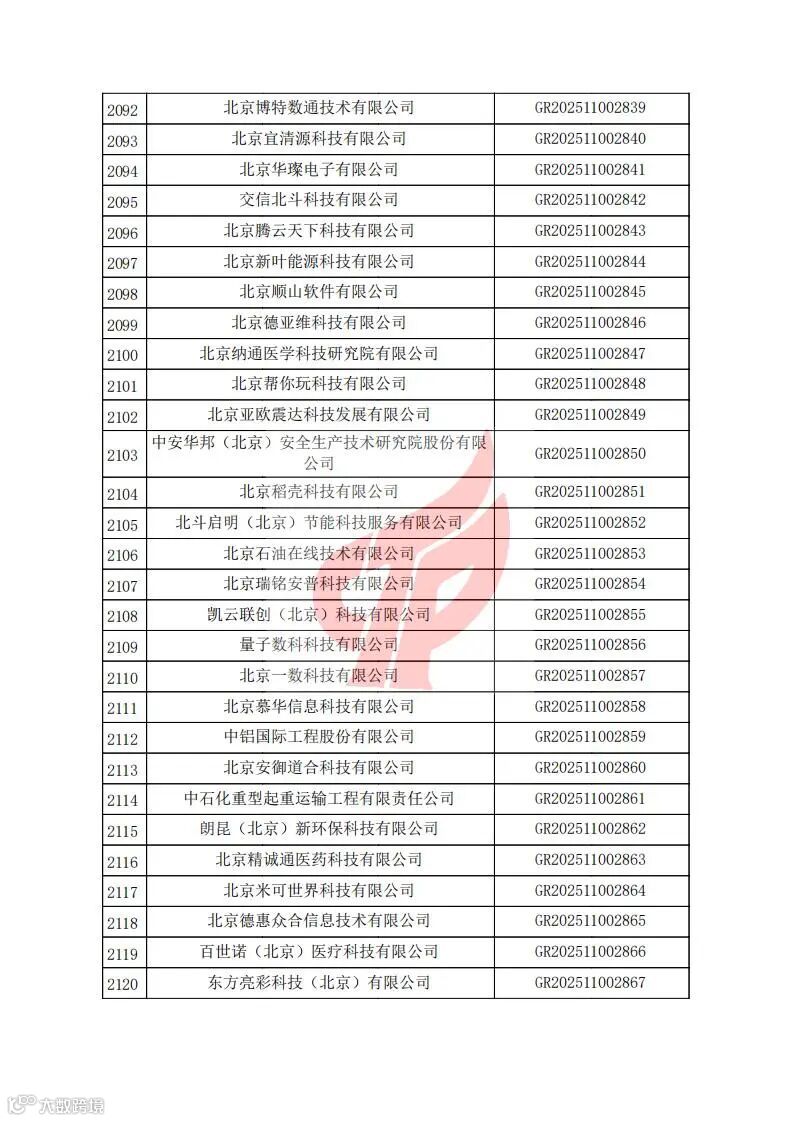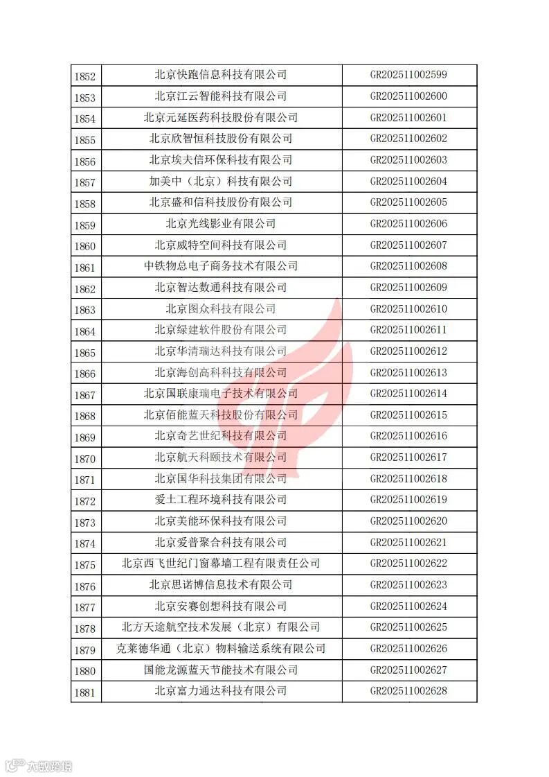 对北京市认定机构2025年认定报备的第二批高新技术企业进行备案的公告