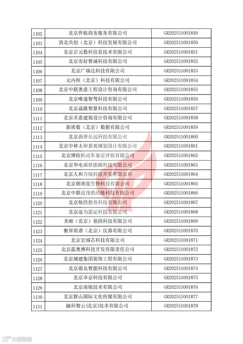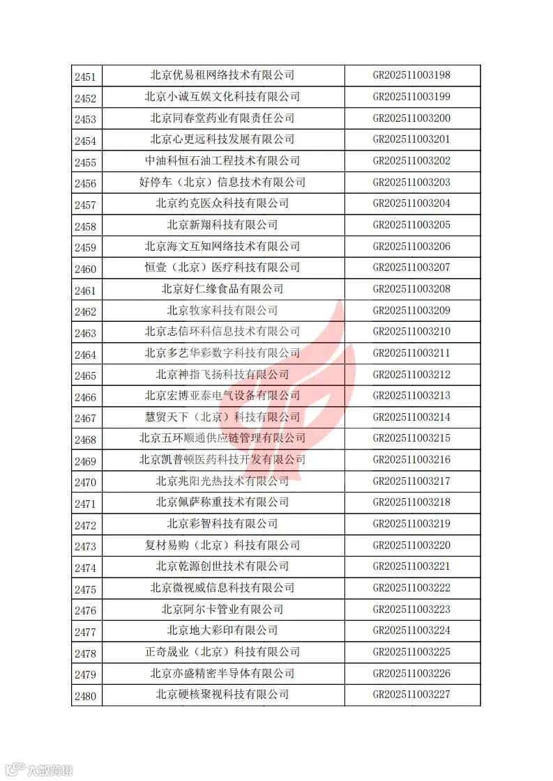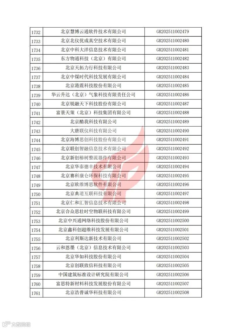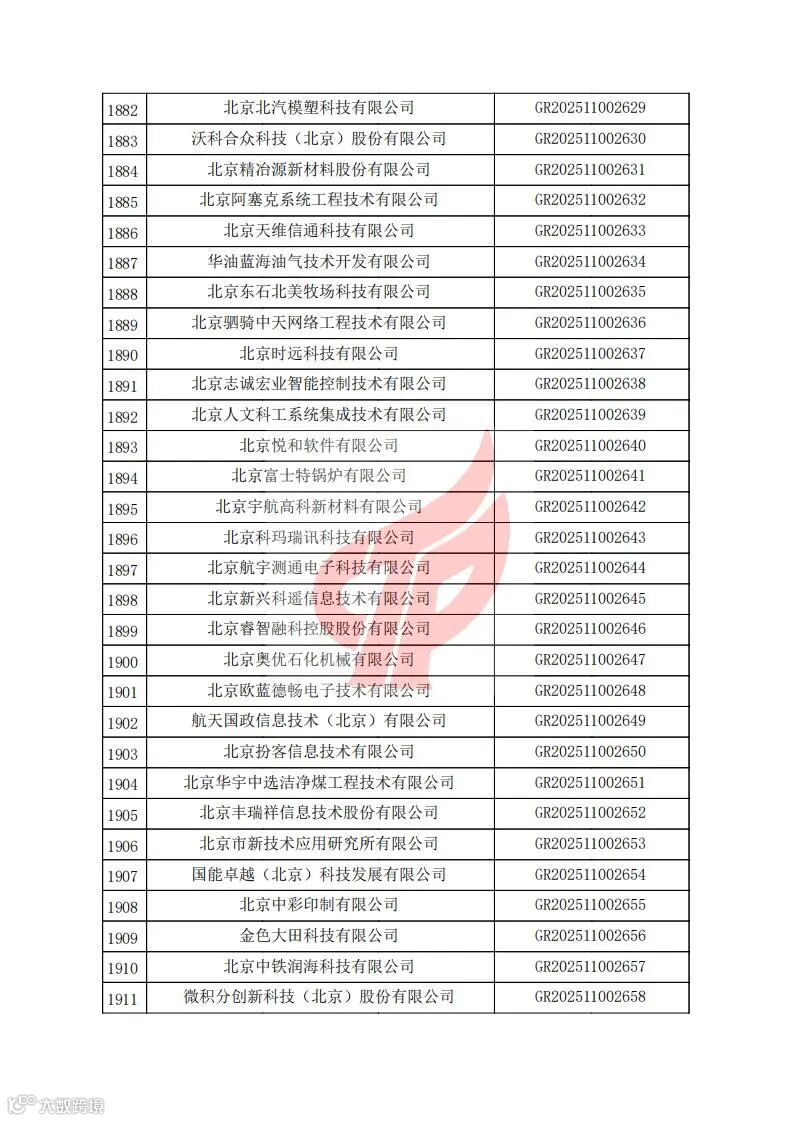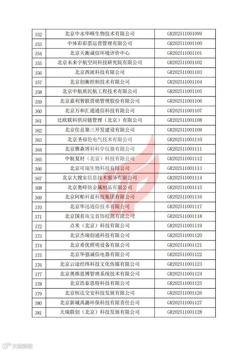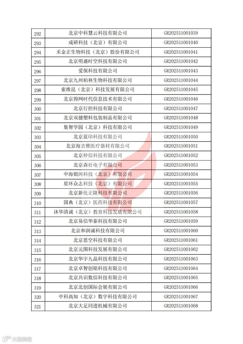 对北京市认定机构2025年认定报备的第二批高新技术企业进行备案的公告