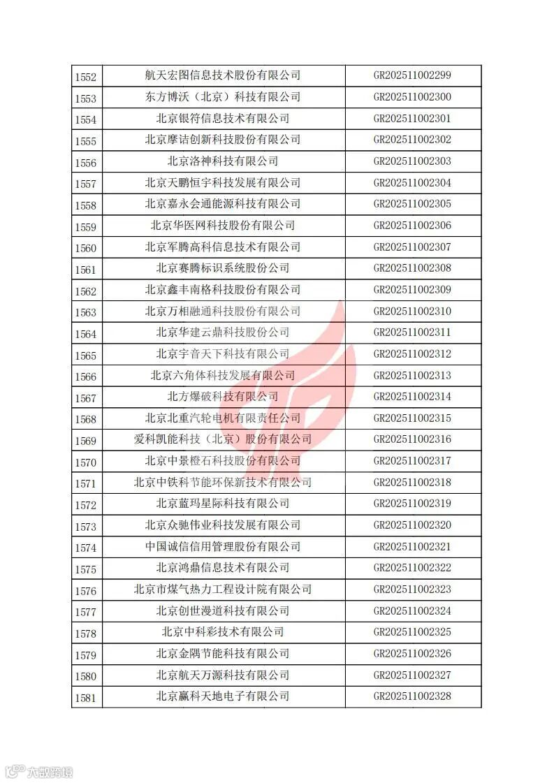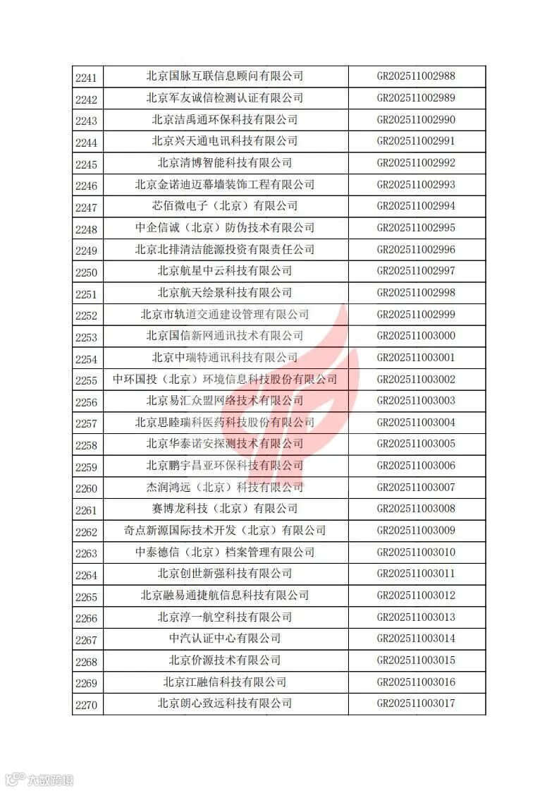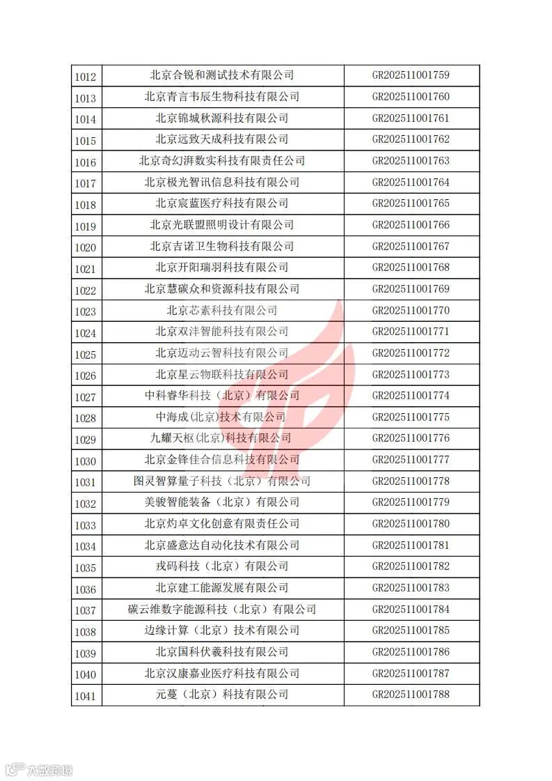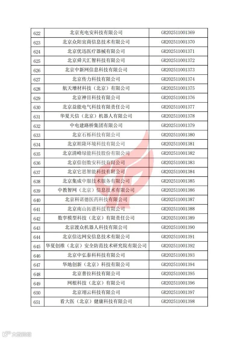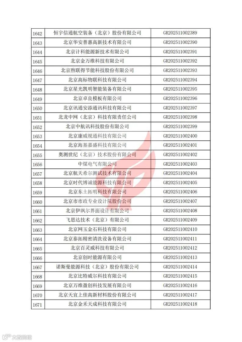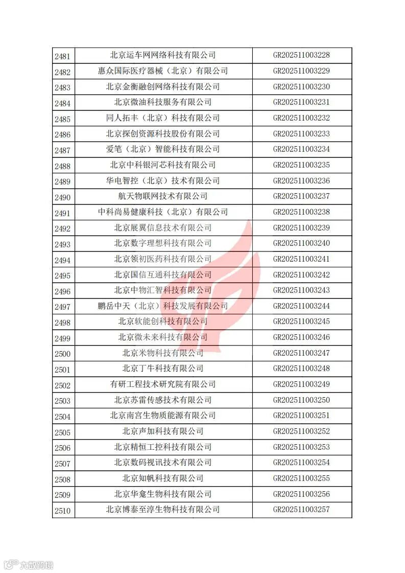 对北京市认定机构2025年认定报备的第二批高新技术企业进行备案的公告