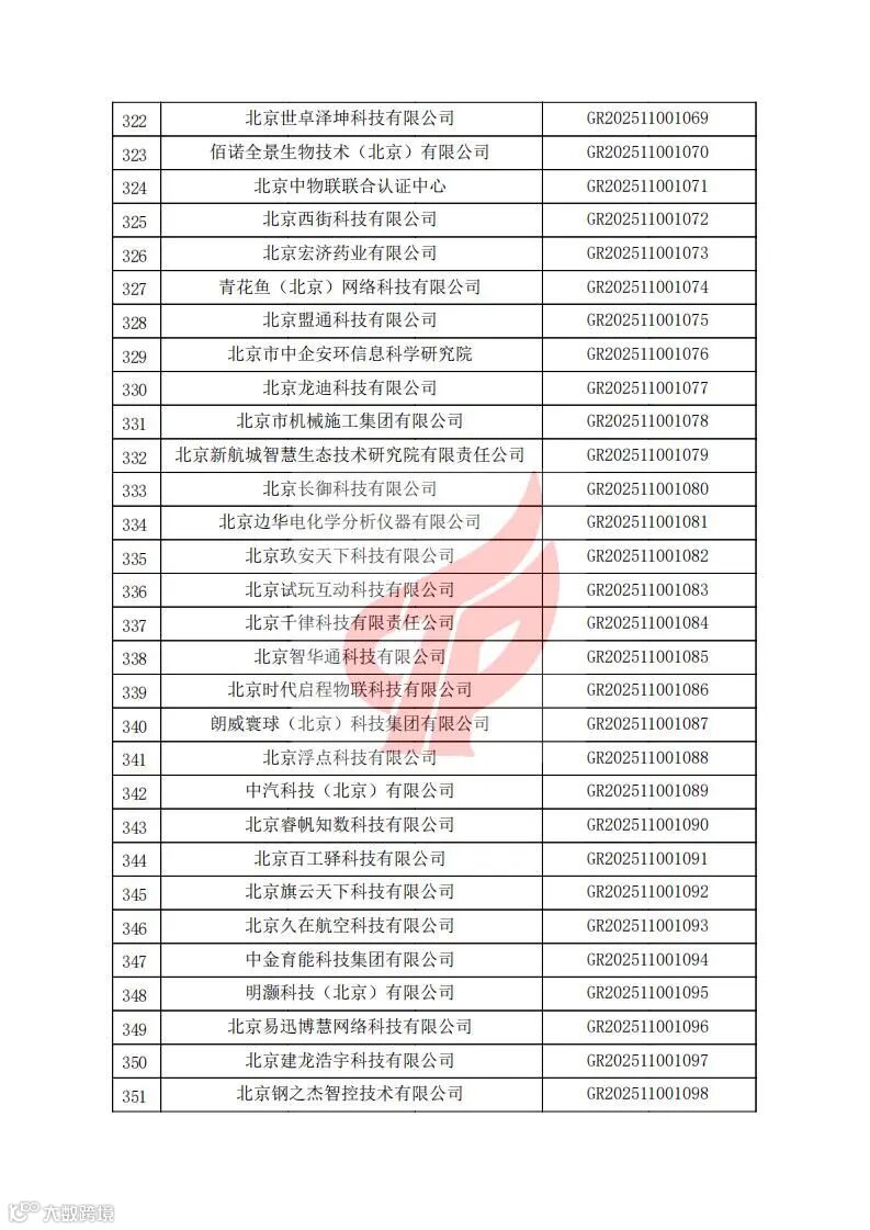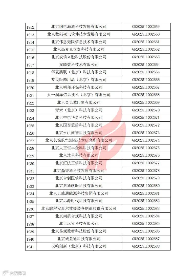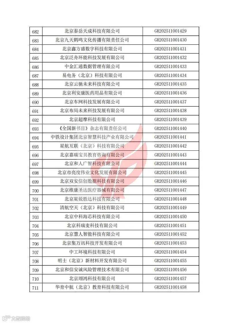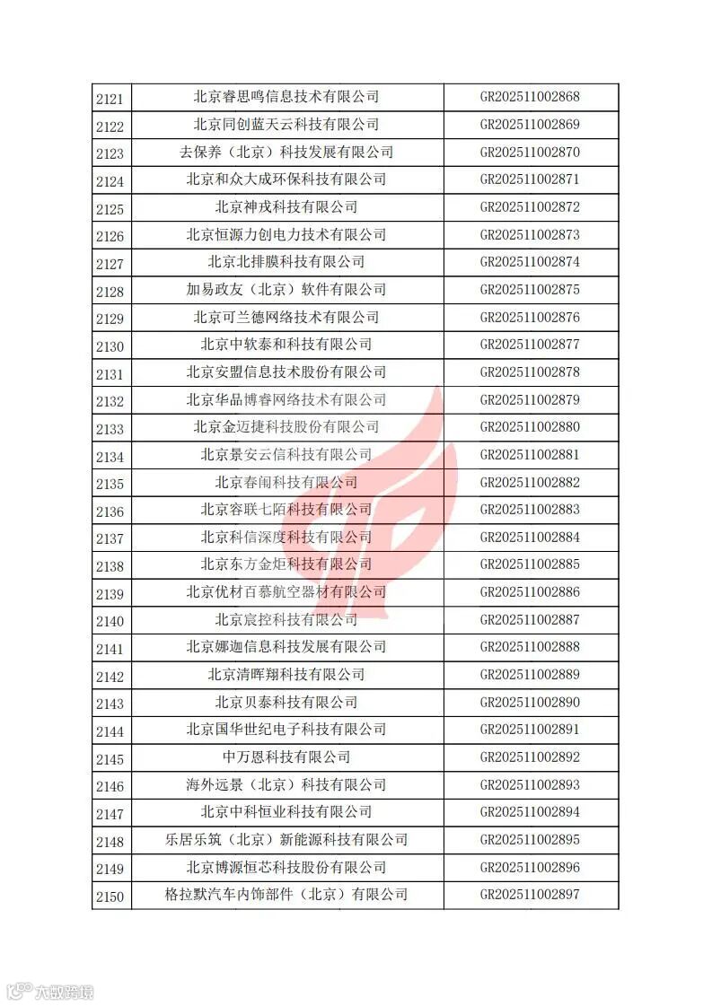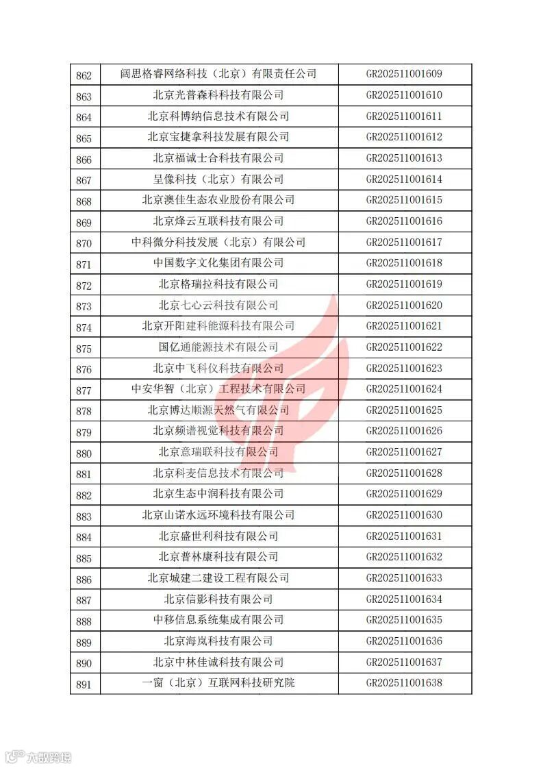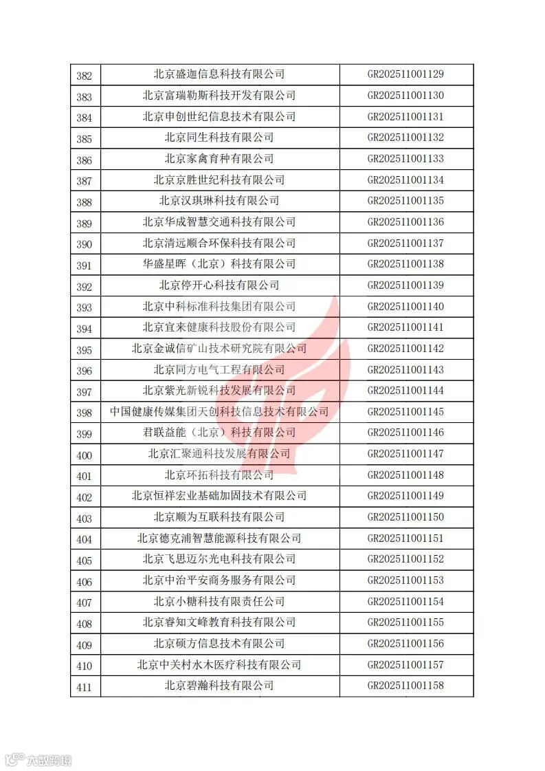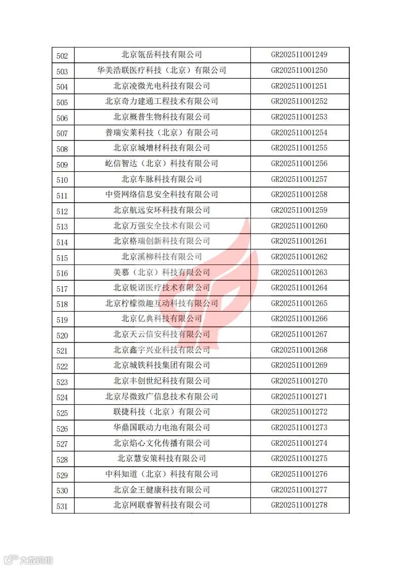 对北京市认定机构2025年认定报备的第二批高新技术企业进行备案的公告