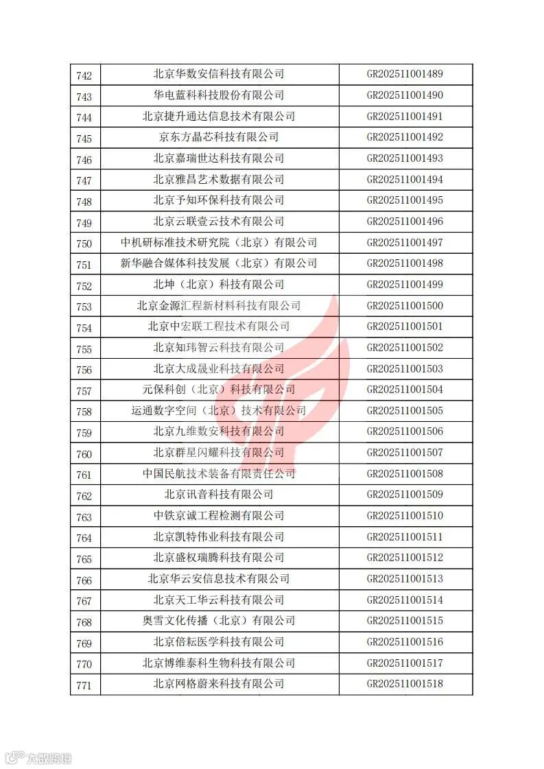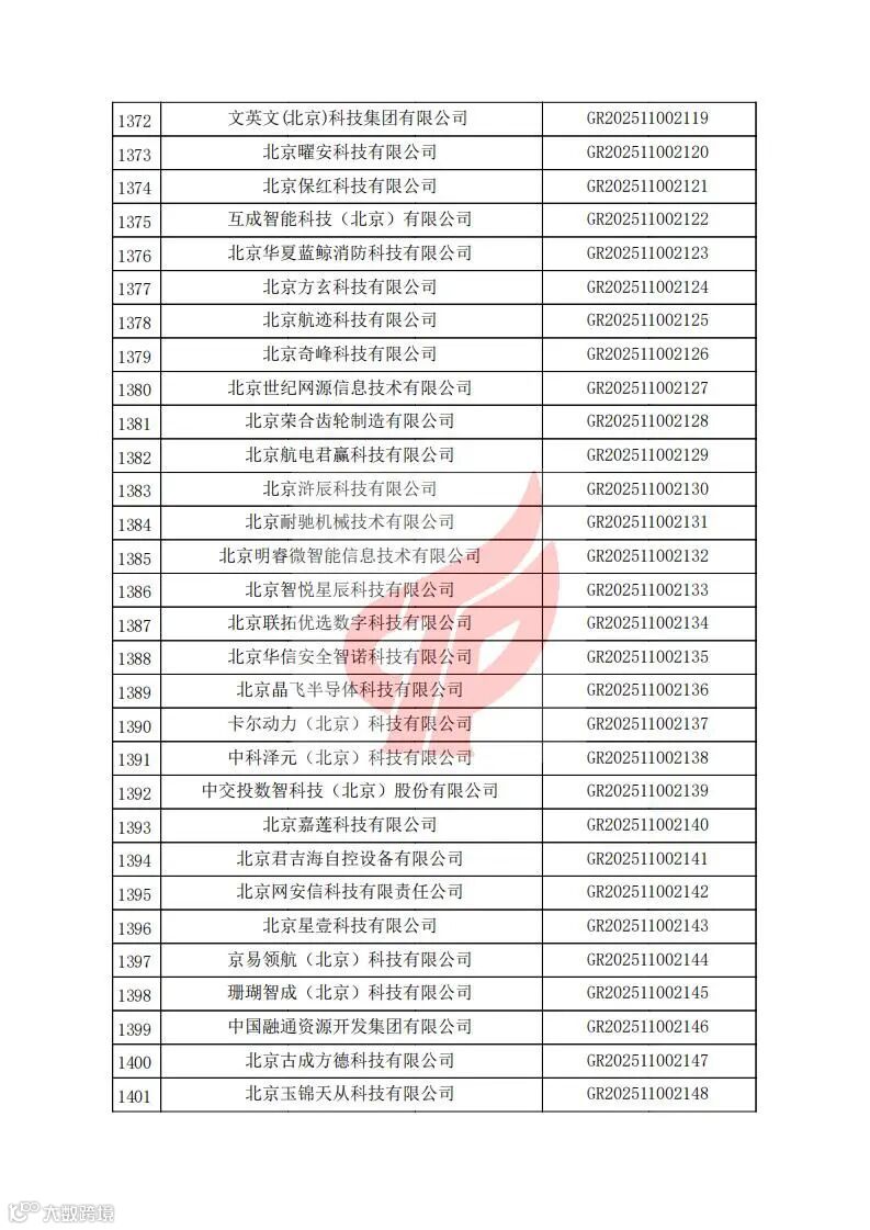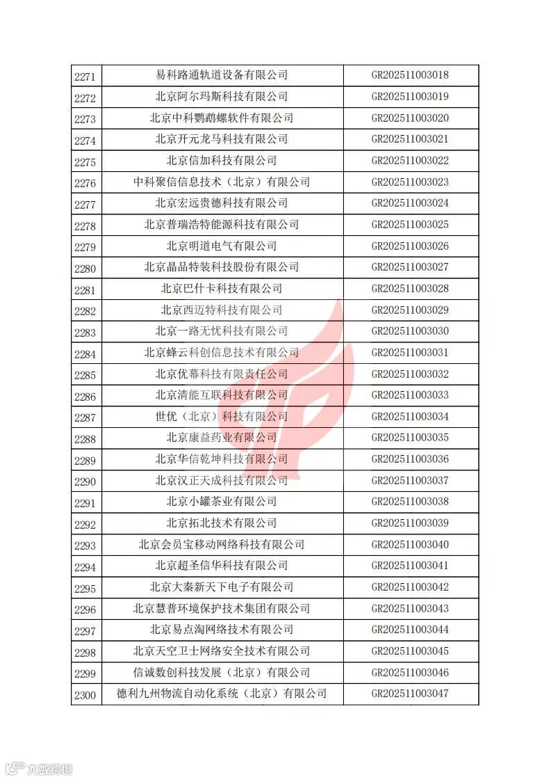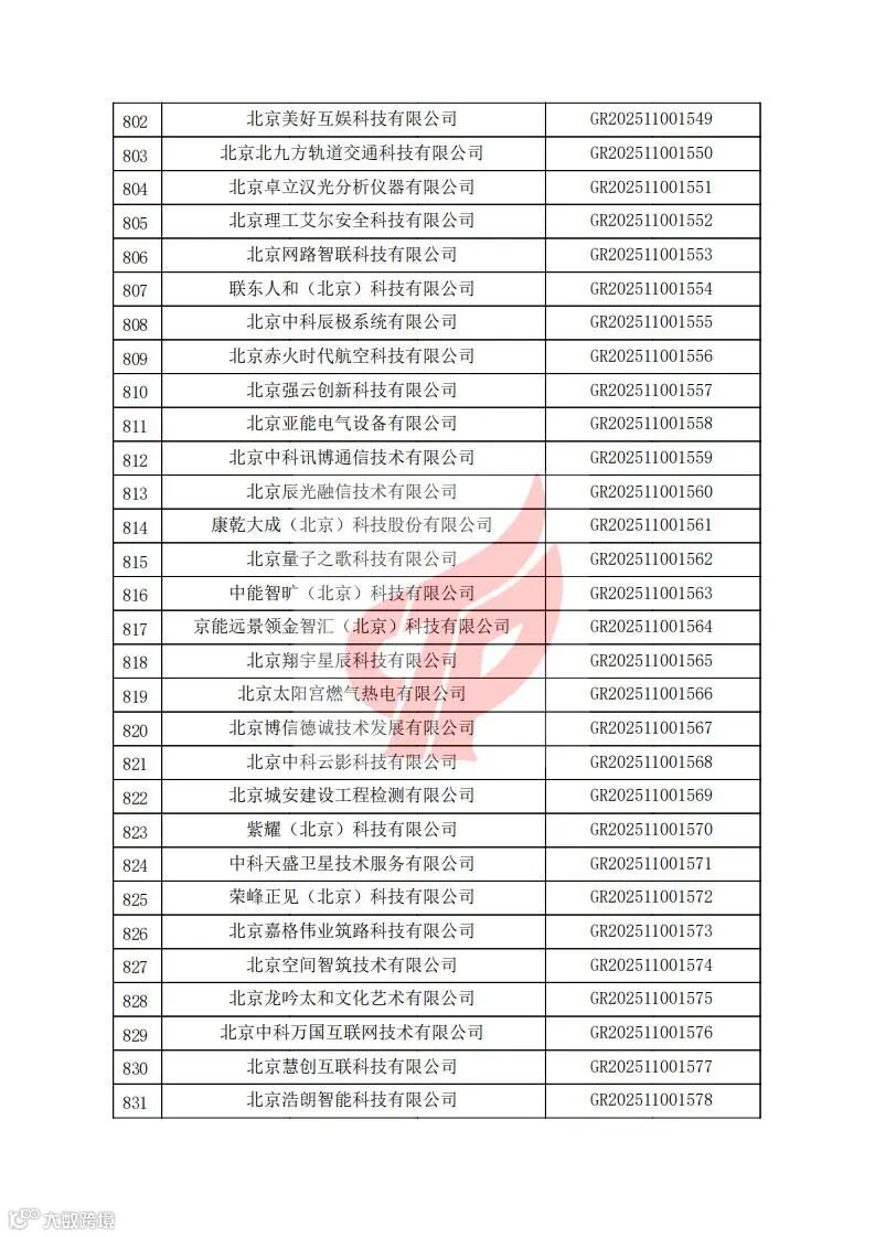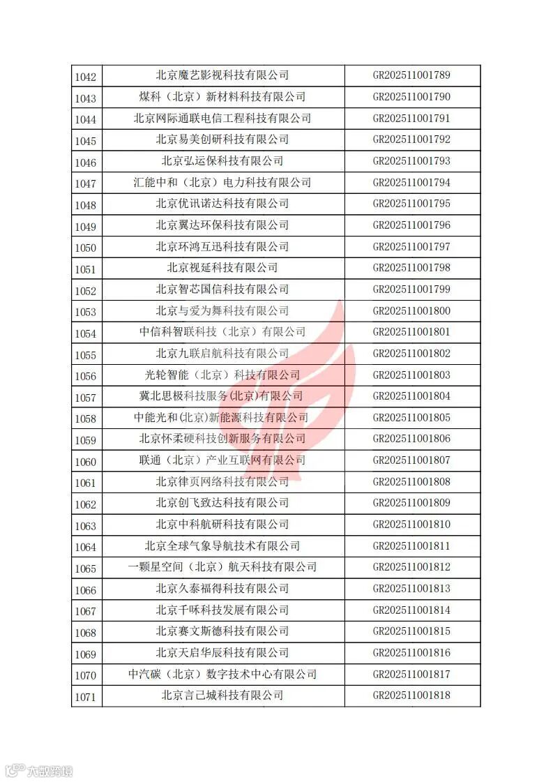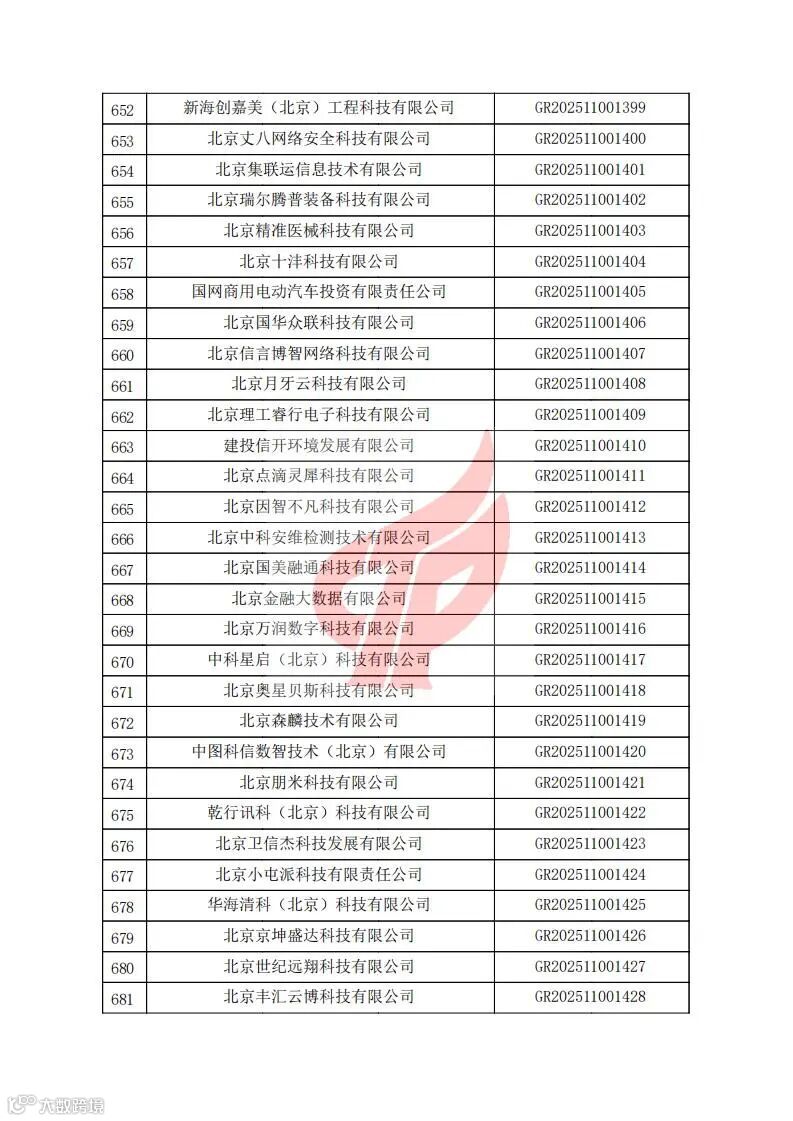 对北京市认定机构2025年认定报备的第二批高新技术企业进行备案的公告