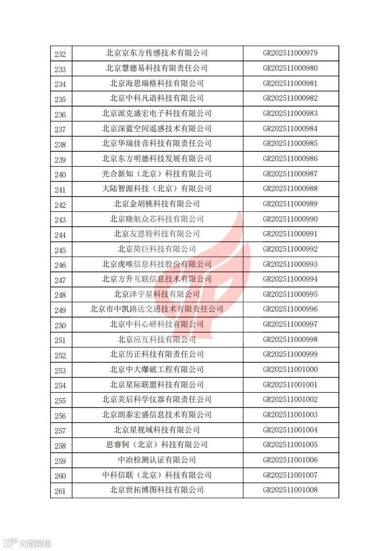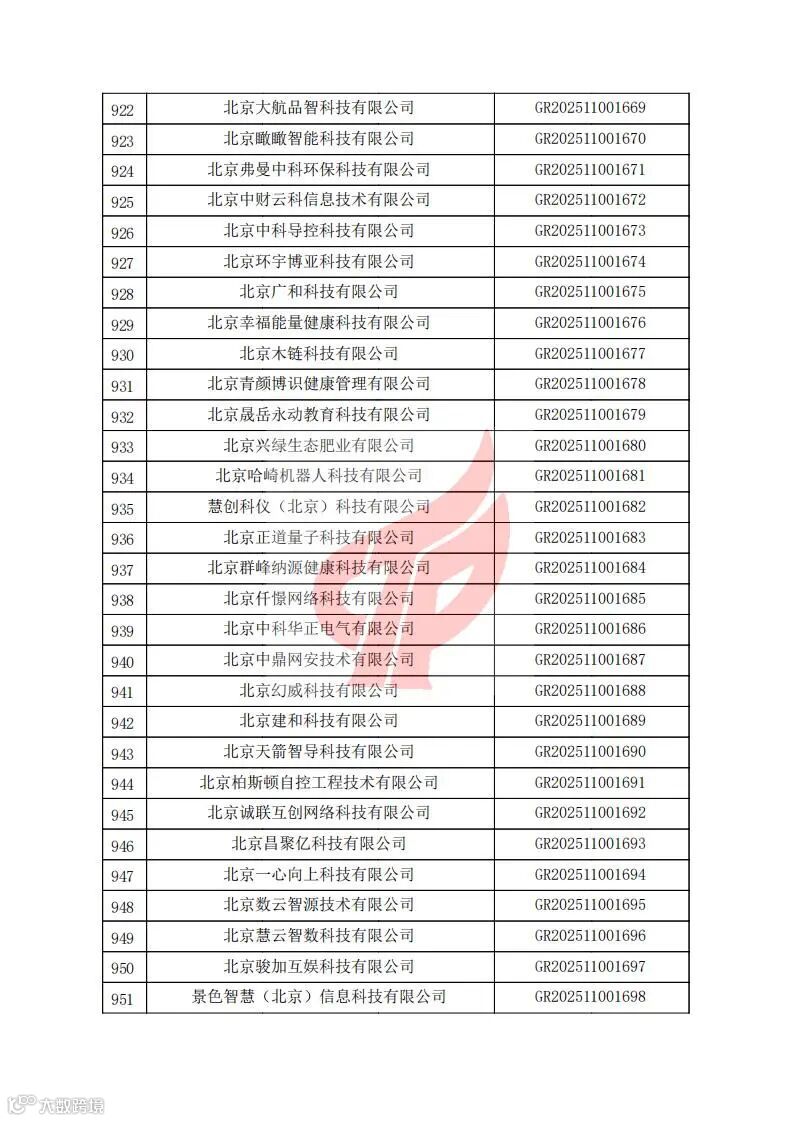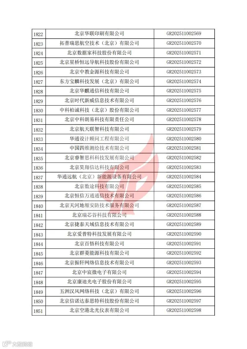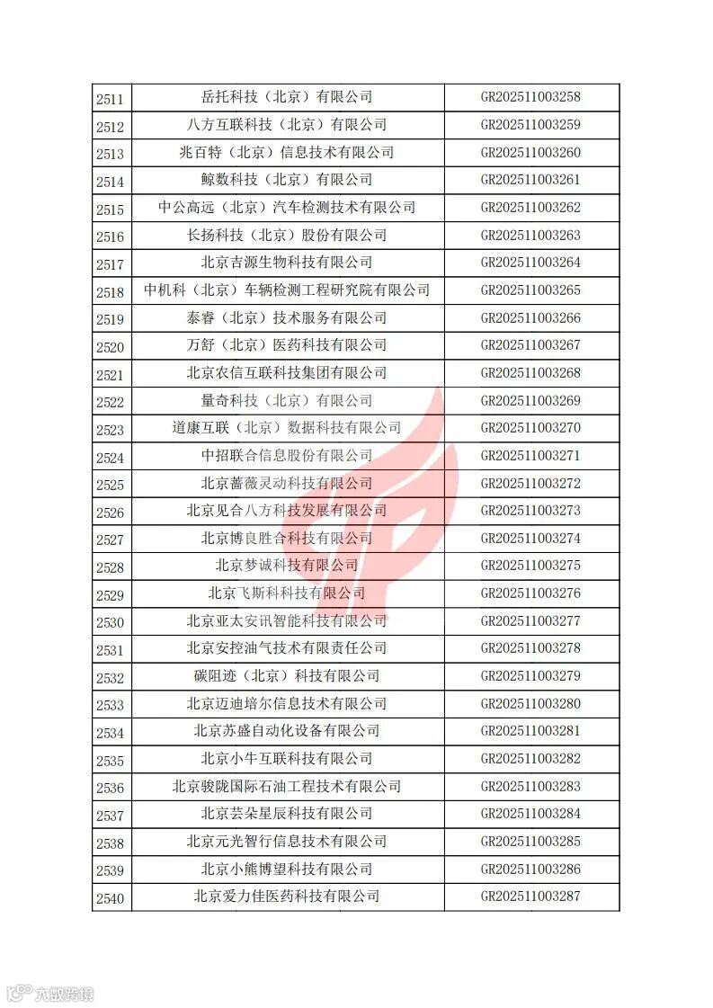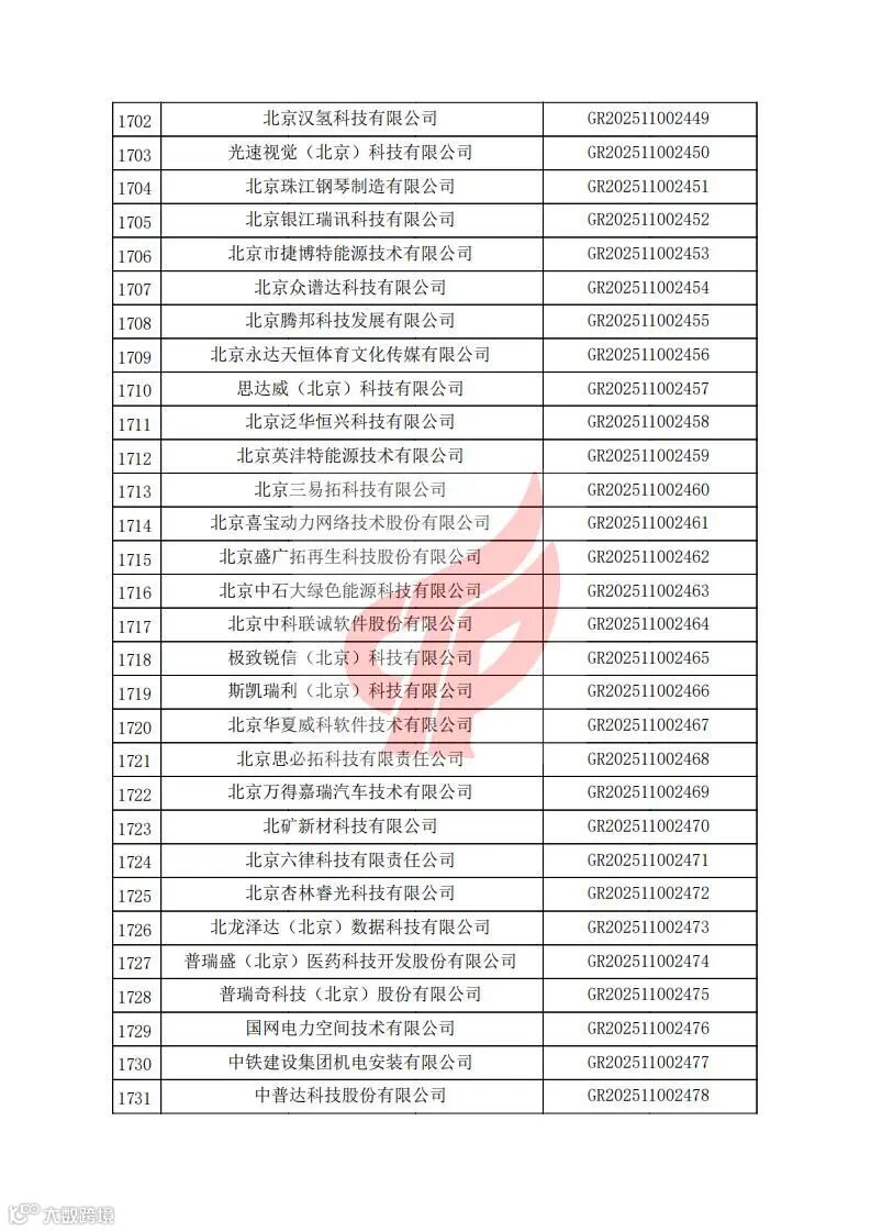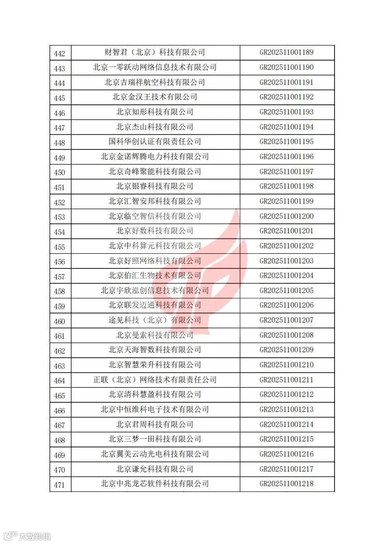 对北京市认定机构2025年认定报备的第二批高新技术企业进行备案的公告