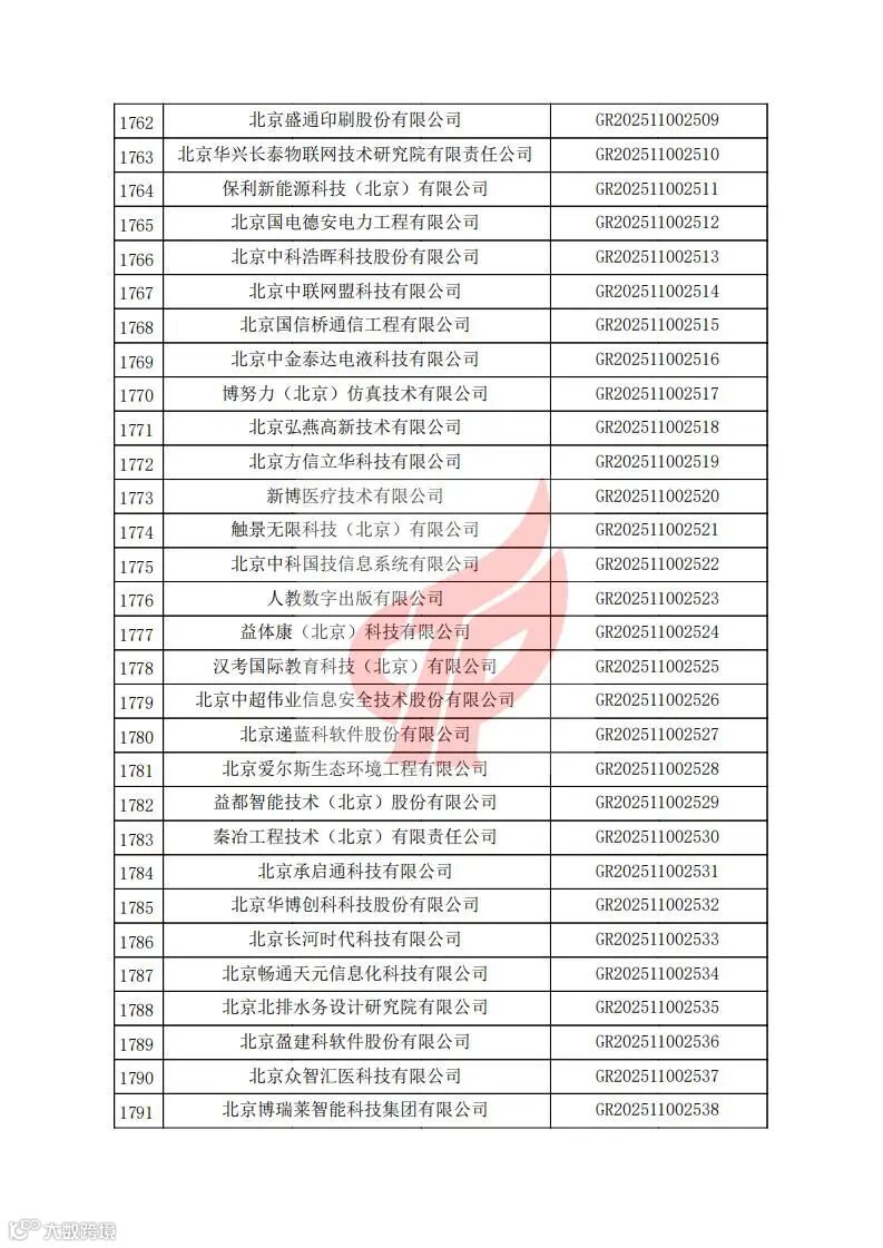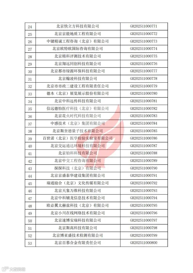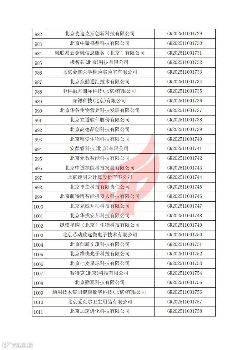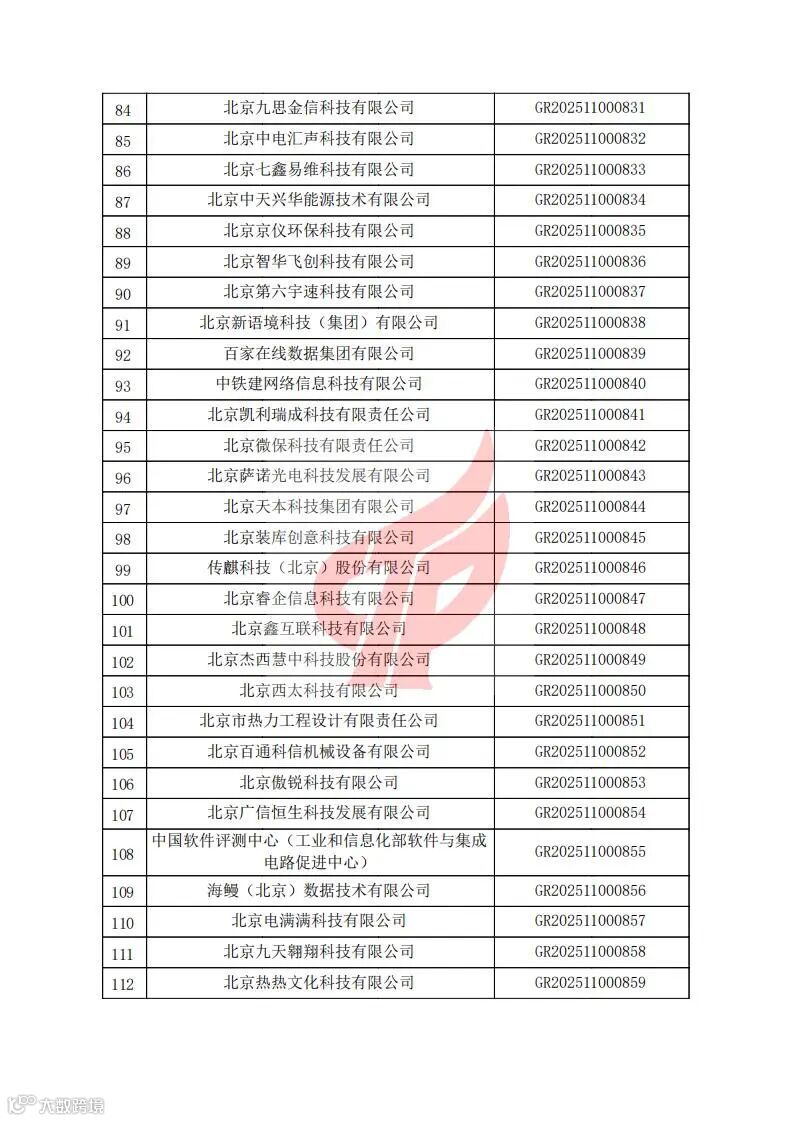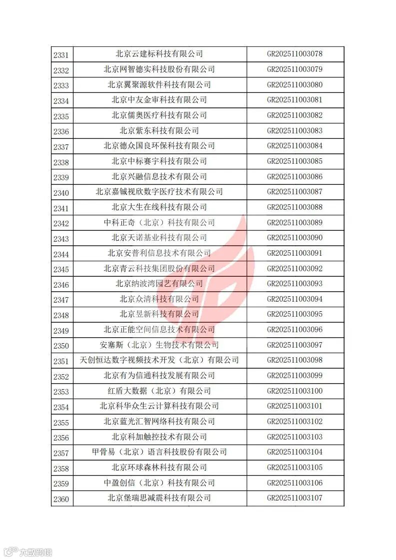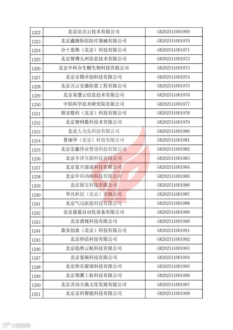 对北京市认定机构2025年认定报备的第二批高新技术企业进行备案的公告