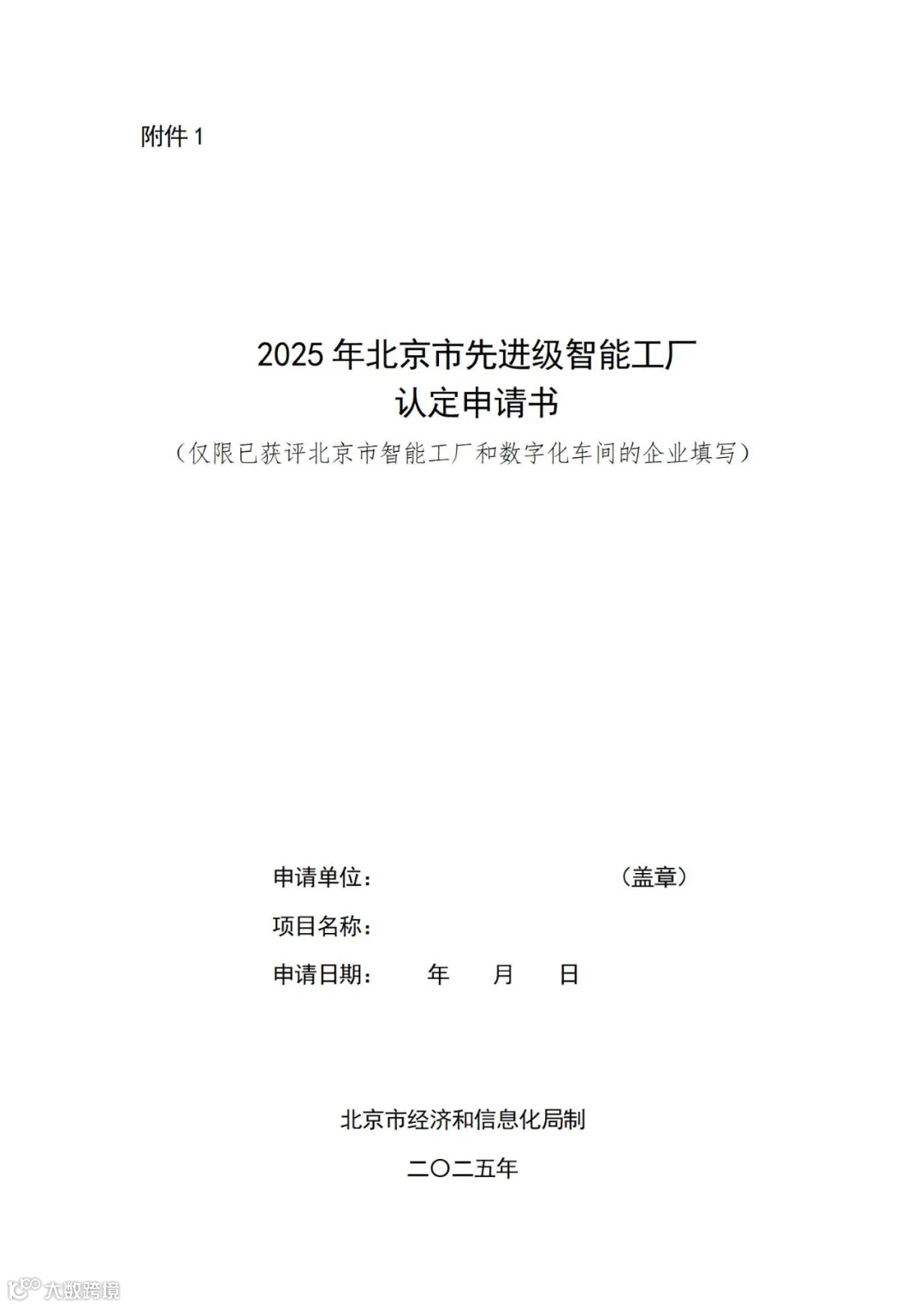 附件:1.2025年北京市先进级智能工厂认定申请书