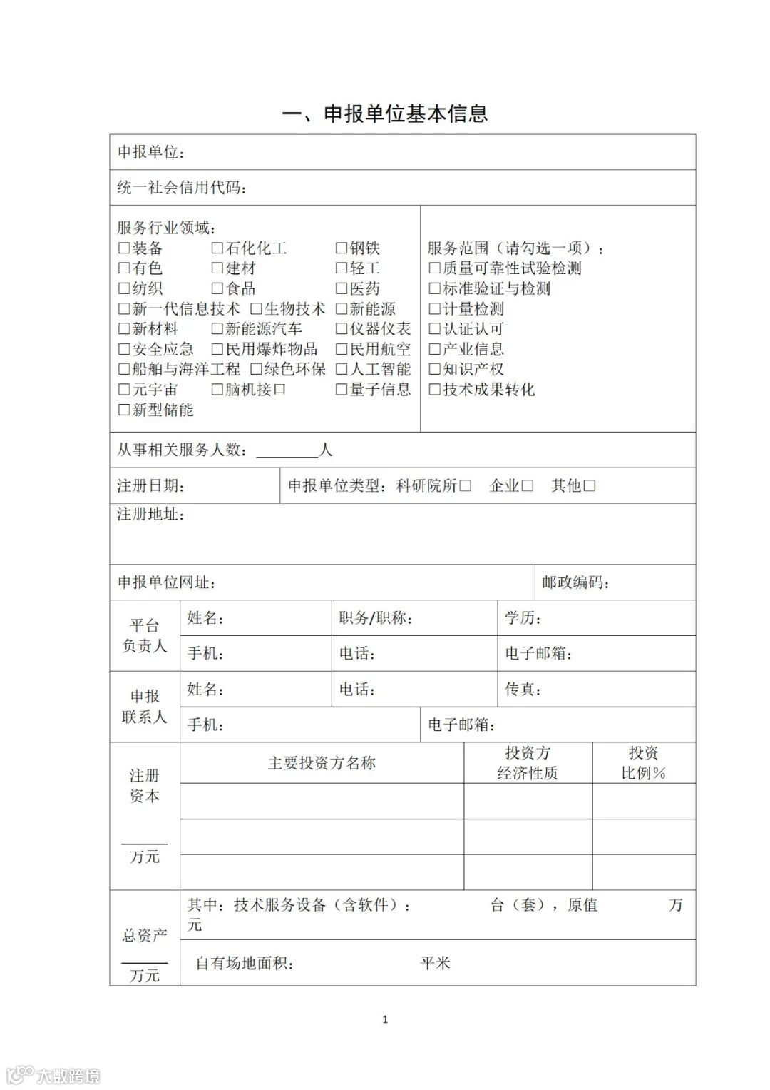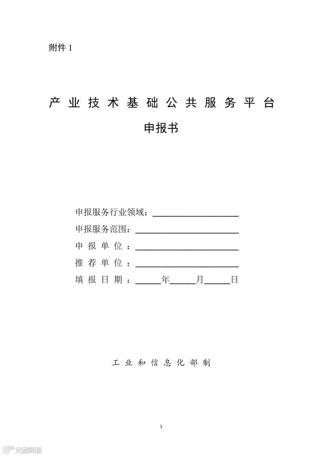 附件:1.产业技术基础公共服务平台申报书