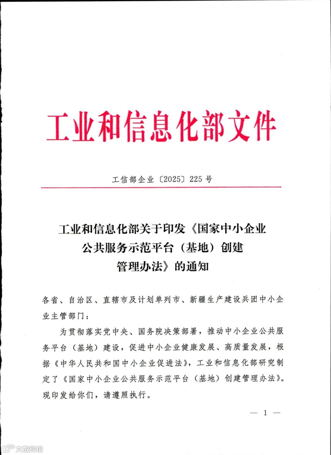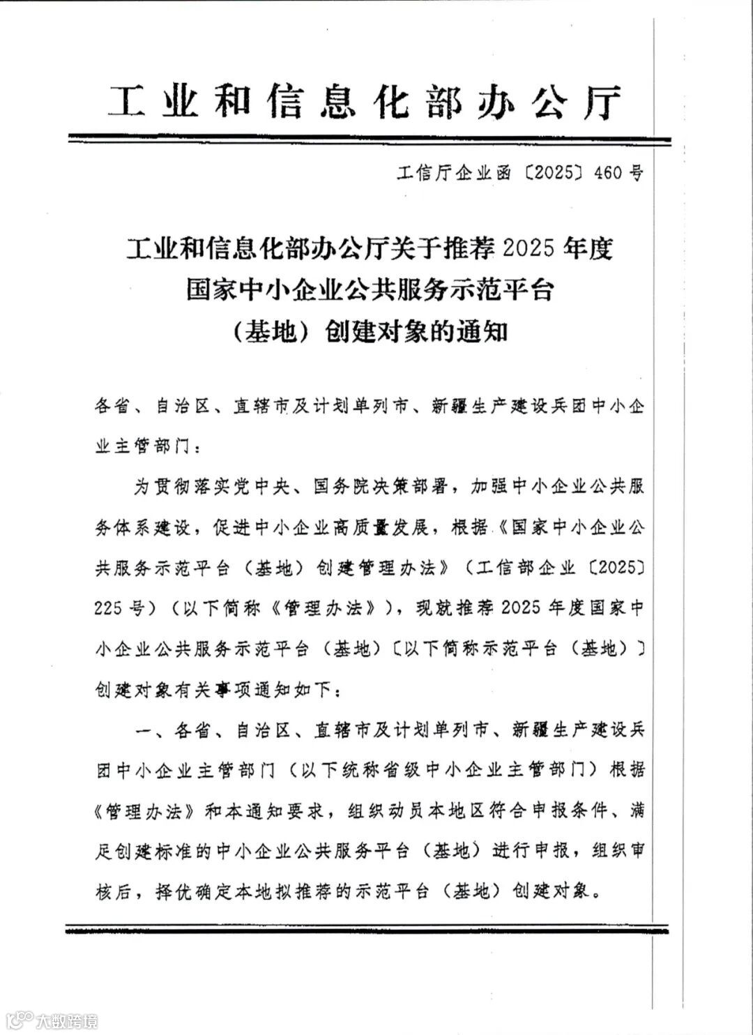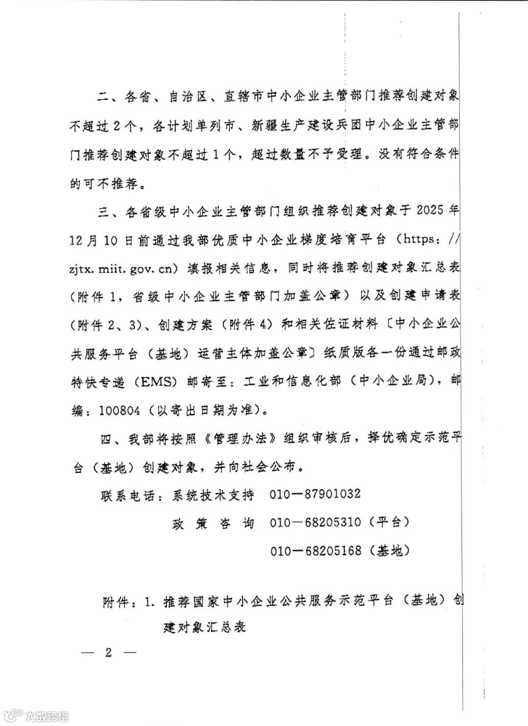 附件:1.工业和信息化部办公厅关于推荐2025年度国家中小企业公共服务示范平台(基地)创建对象的通知