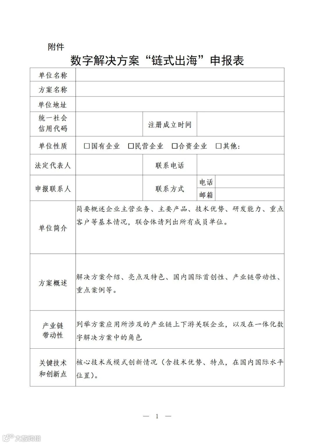 附件:数字解决方案“链式出海”申报表