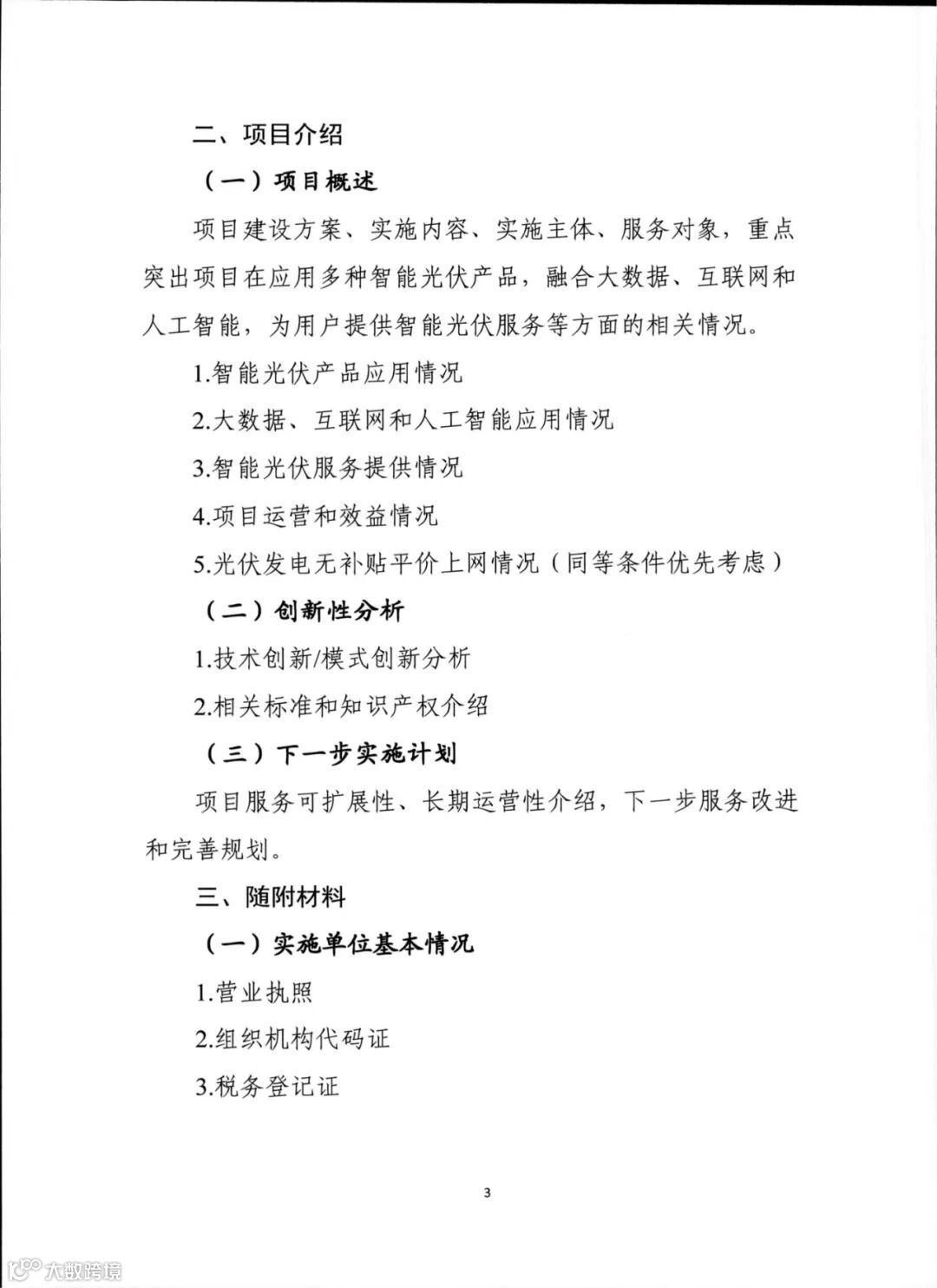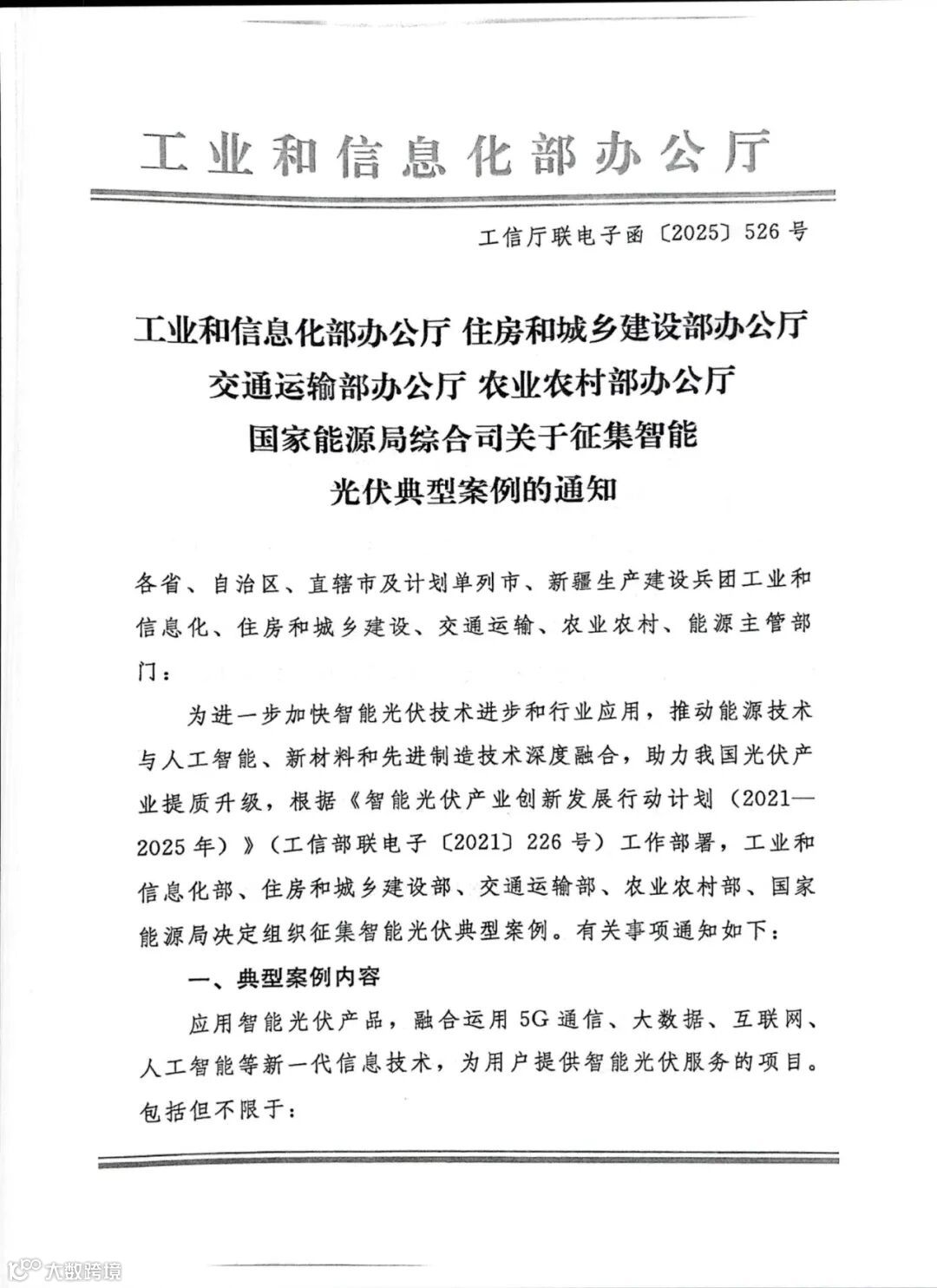 根据工业和信息化部办公厅《关于征集智能光伏典型案例的通知》(工信厅联电子函〔2025〕526号)要求,开展本市征集智能光伏典型案例的工作,有关事项通知如下: