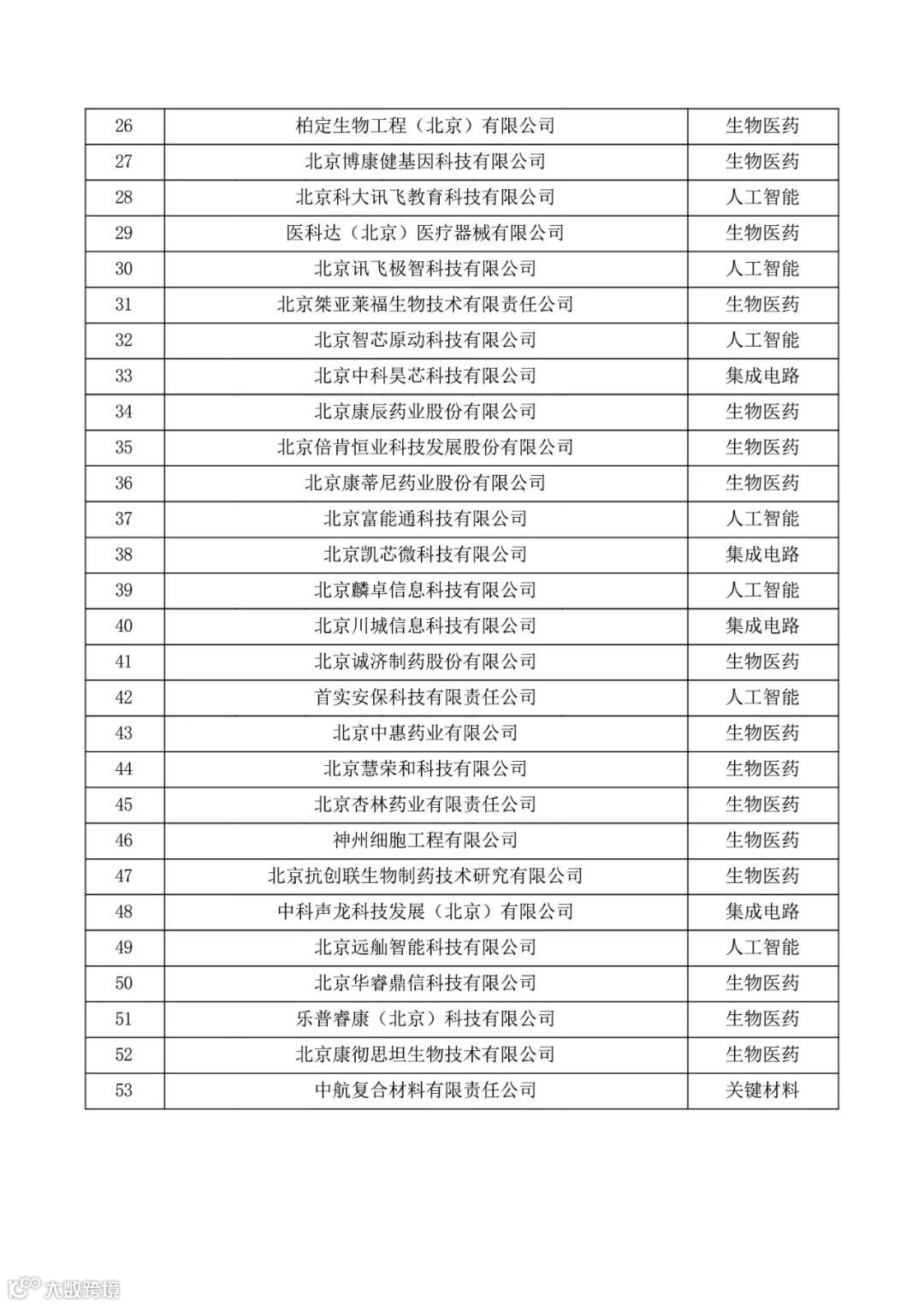 对北京市认定机构2025年认定报备的第二批集成电路等领域政策试点高新技术企业进行备案的公示
