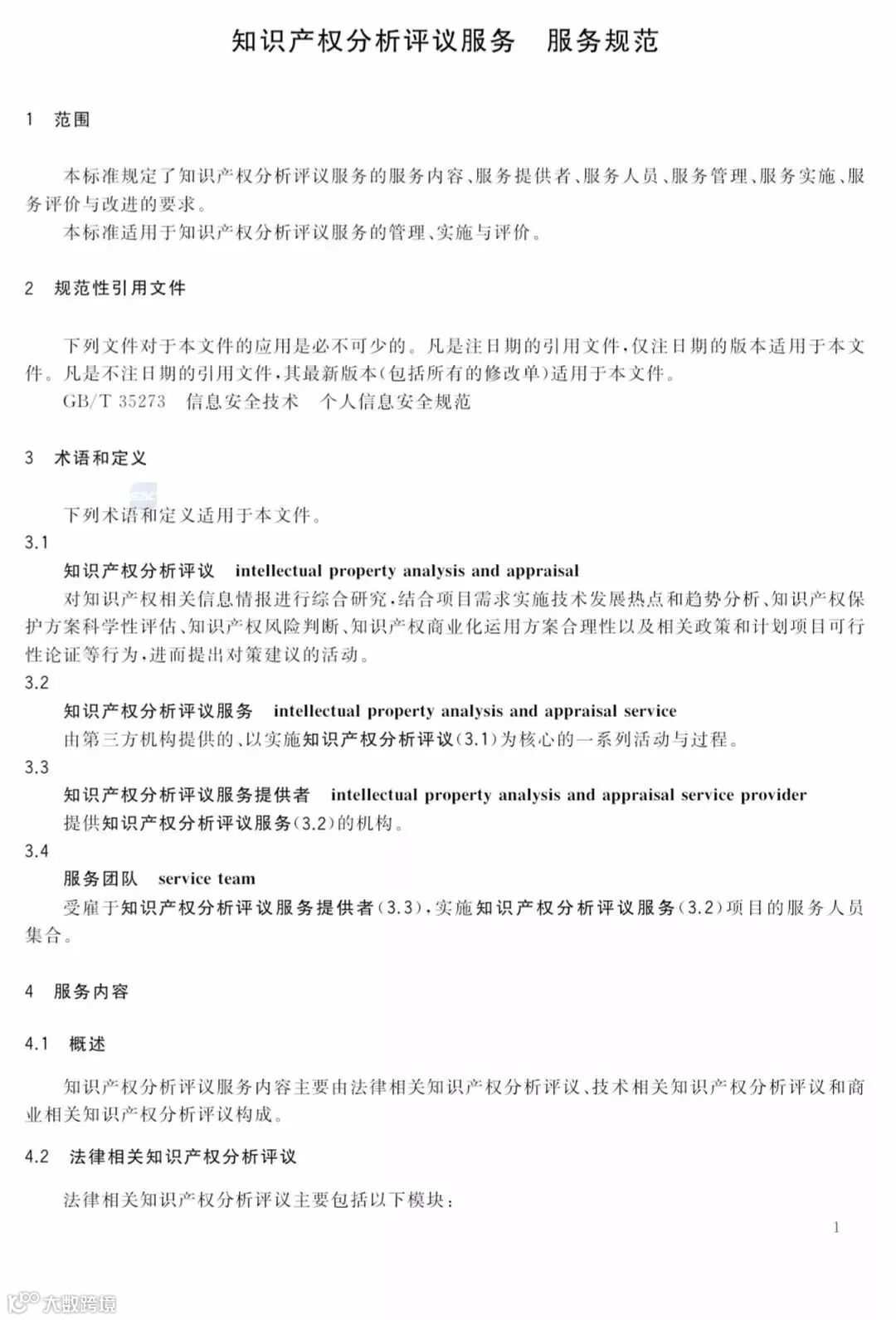导读:《知识产权分析评议服务 服务规范》10月1日起施行!