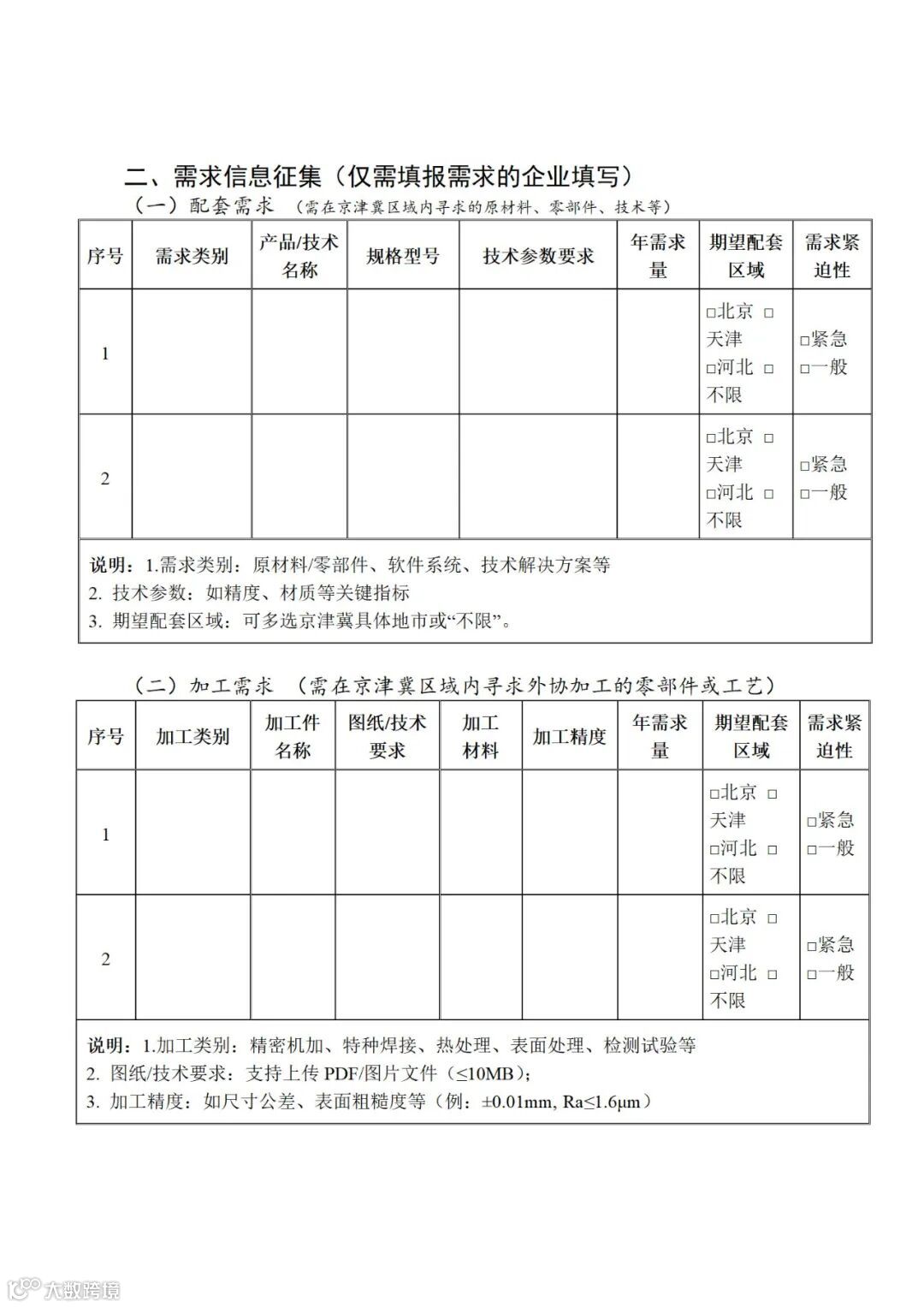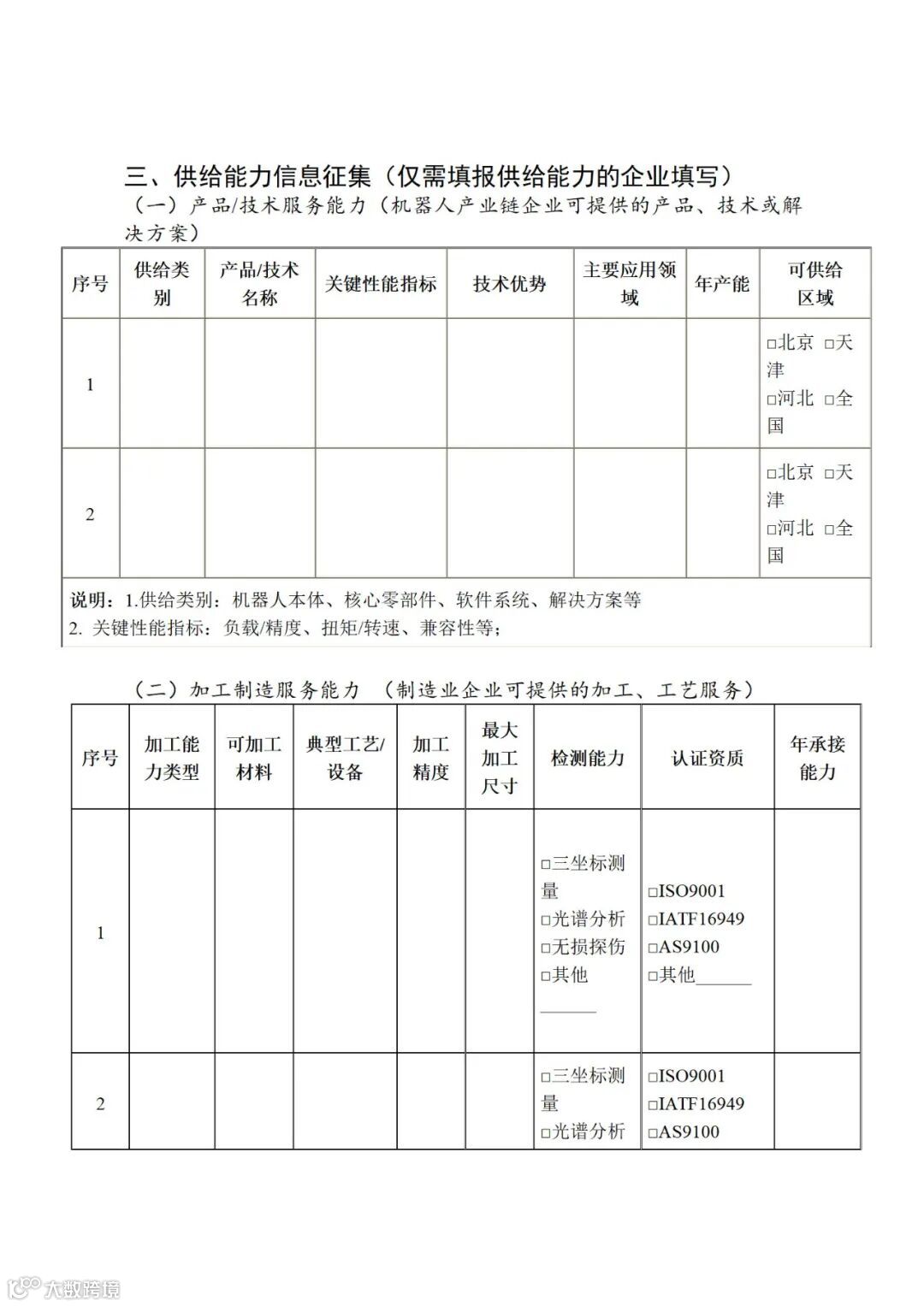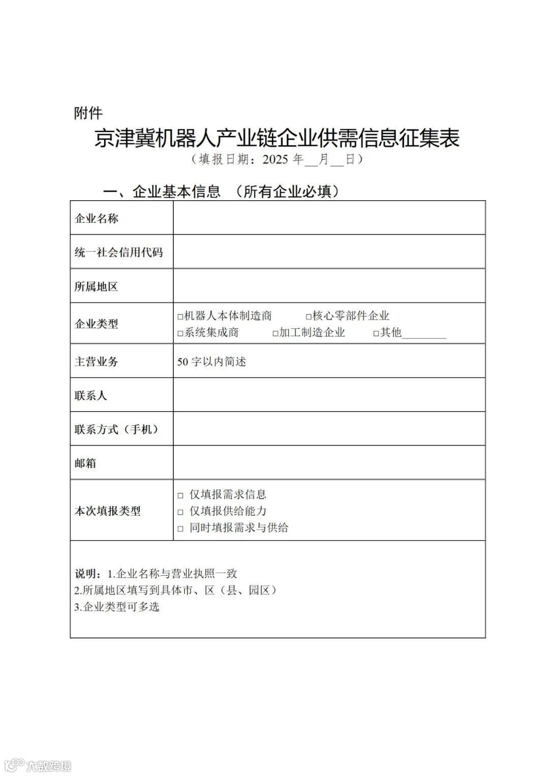附件:京津冀机器人产业链企业供需信息征集表