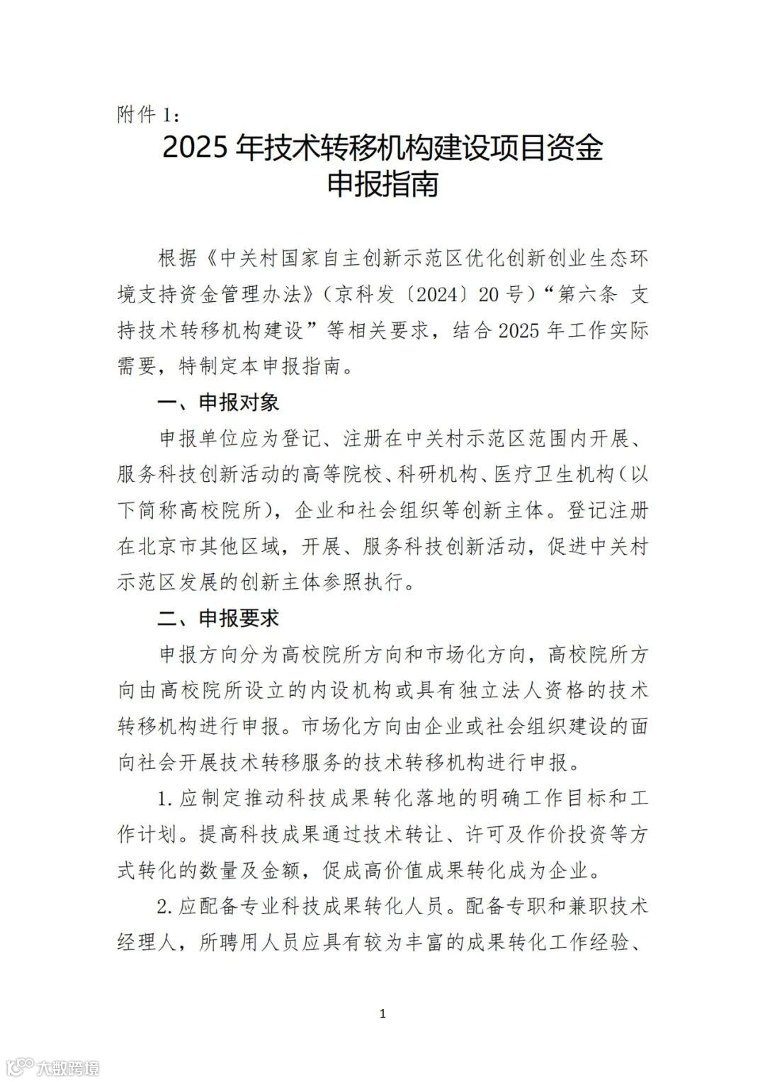 附件:1.2025年技术转移机构建设项目资金申报指南