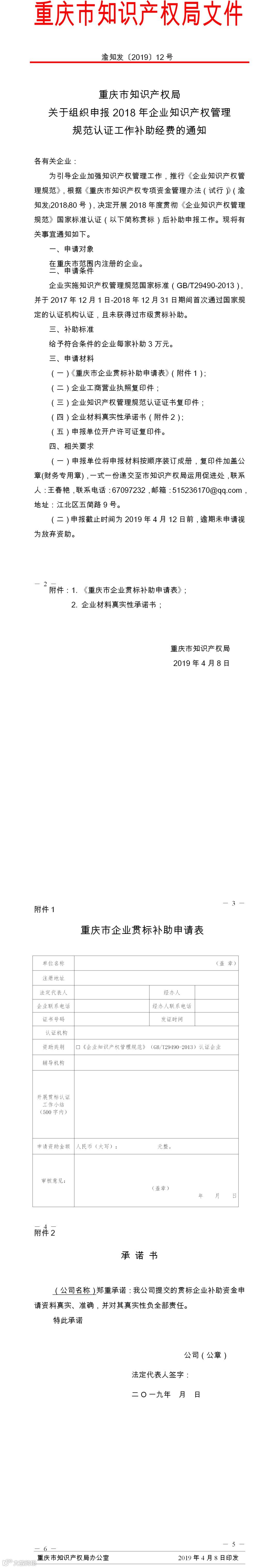 企业实施知识产权管理规范国家标准(GB/T29490-2013),并于2017年12月1日-2018年12月31日期间首次通过国家规定的认证机构认证,且未获得过市级贯标补助。