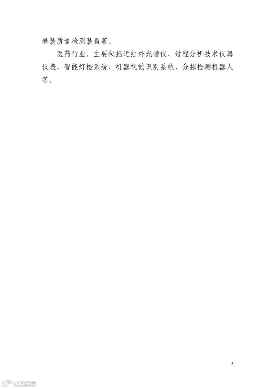 医药行业。主要包括近红外光谱仪、过程分析技术仪器仪表、智能灯检系统、机器视觉识别系统、分拣检测机器人等。