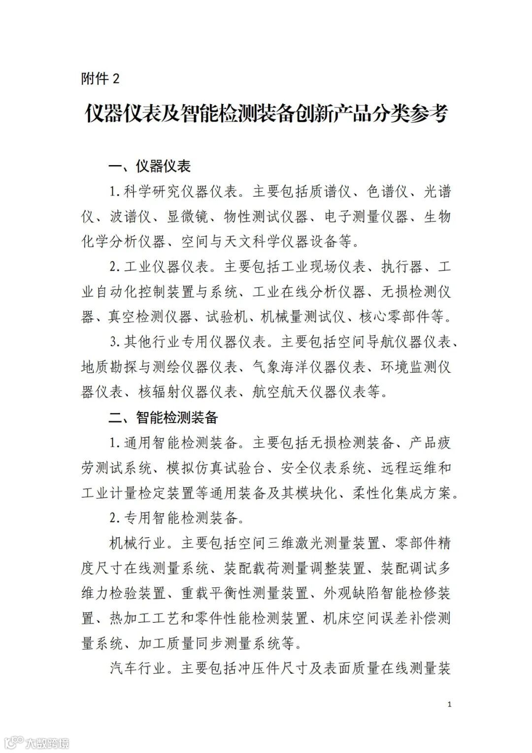 2.仪器仪表及智能检测装备创新产品分类参考