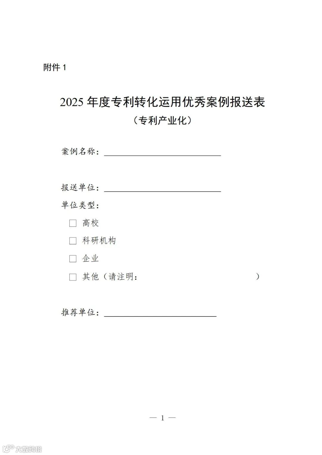附件:1.2025年度优秀案例报送表(专利产业化)