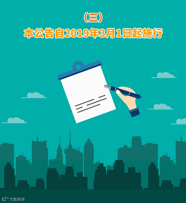 三、本公告自2019年3月1日起施行。《国家税务总局关于纳税信用A级纳税人取消增值税发票认证有关问题的公告》(国家税务总局公告2016年第7号发布,国家税务总局公告2018年第31号修改)、《国家税务总局关于全面推开营业税改征增值税试点有关税收征收管理事项的公告》(国家税务总局公告2016年第23号发布,国家税务总局公告2018年第31号修改)第五条、《国家税务总局关于在境外提供建筑服务等有关问题的公告》(国家税务总局公告2016年第69号发布,国家税务总局公告2018年第31号修改)第十条、《国家税务总局关于按照纳税信用等级对增值税发票使用实行分类管理有关事项的公告》(国家税务总局公告2016年第71号)第二条、《国家税务总局关于开展鉴证咨询业增值税小规模纳税人自开增值税专用发票试点工作有关事项的公告》(国家税务总局公告2017年第4号发布,国家税务总局公告2018年第31号修改)、《国家税务总局关于进一步明确营改增有关征管问题的公告》(国家税务总局公告2017年第11号发布,国家税务总局公告2018年第31号修改)第九条、《国家税务总局关于增值税发票管理若干事项的公告》(国家税务总局公告2017年第45号发布,国家税务总局公告2018年第31号修改)第二条、《国家税务总局关于纳税信用评价有关事项的公告》(国家税务总局公告2018年第8号)第四条第一项同时废止。