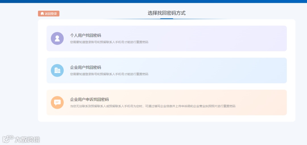 4、若无法确定预留联系人,则点击"企业用户申诉找回密码"