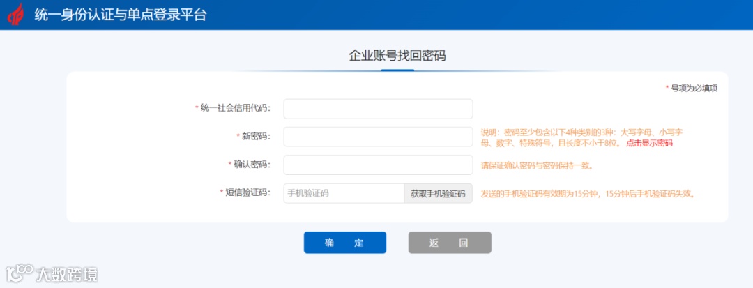 3. 填写如下信息,通过预留联系人手机号,发送验证码,即可完成密码重置