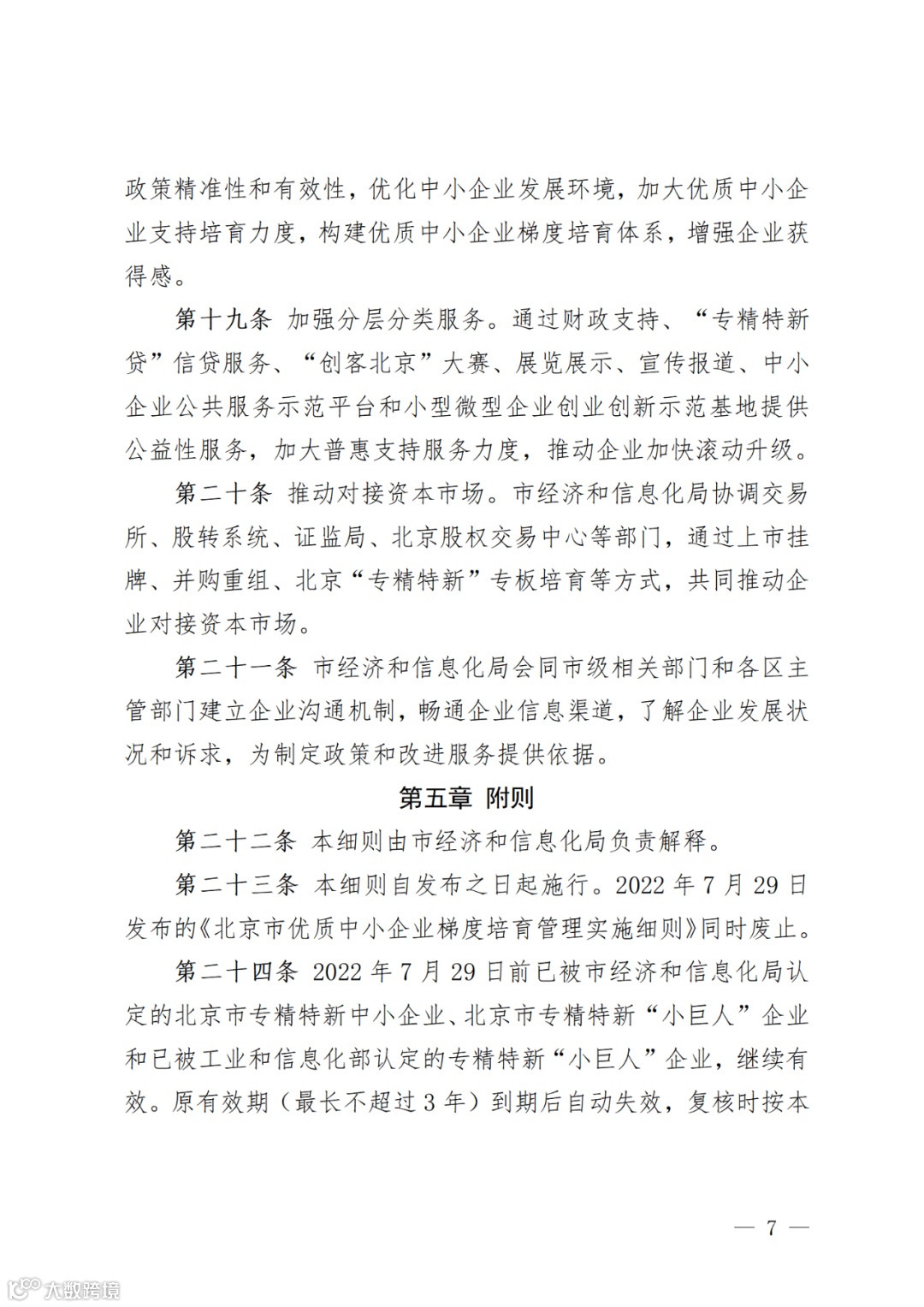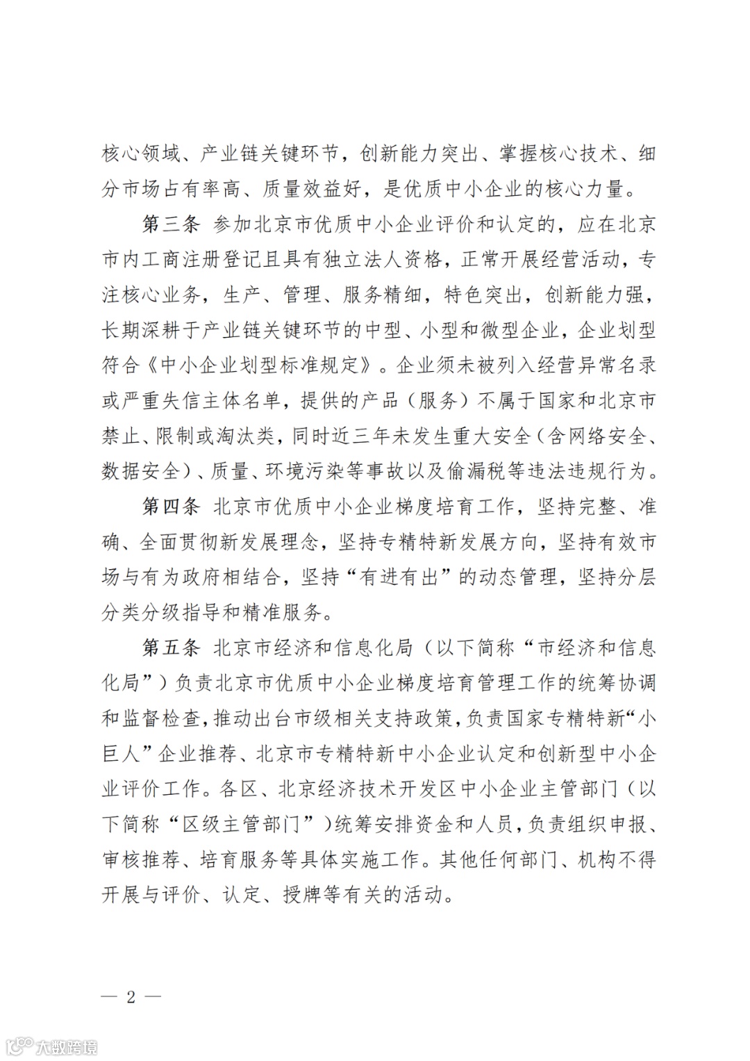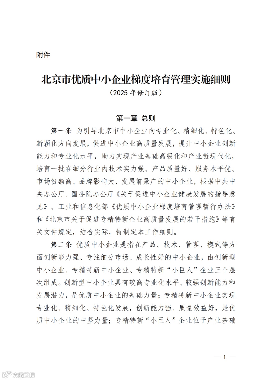 北京市经济和信息化局关于印发《北京市优质中小企业梯度培育管理实施细则(2025年修订版)》的通知