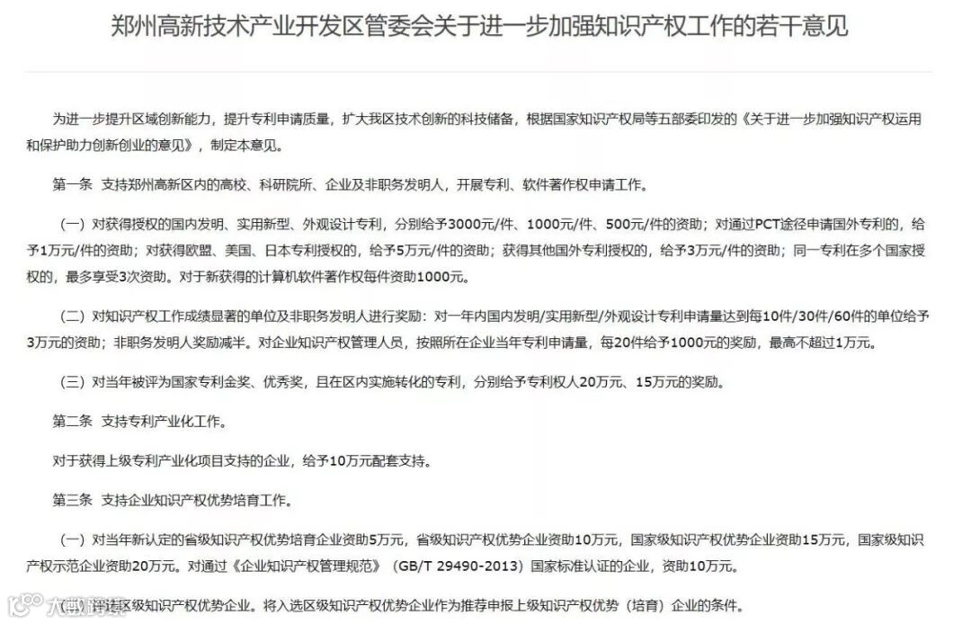 对通过《企业知识产权管理规范》(GB/T 29490-2013)国家标准认证的企业,资助10万元。