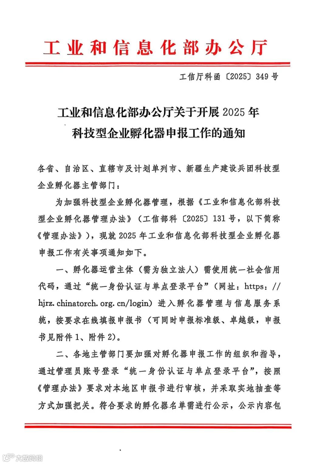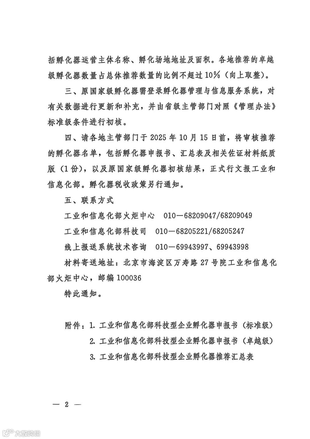 附件:1.工业和信息化部办公厅《关于开展2025年科技型企业孵化器申报工作的通知》