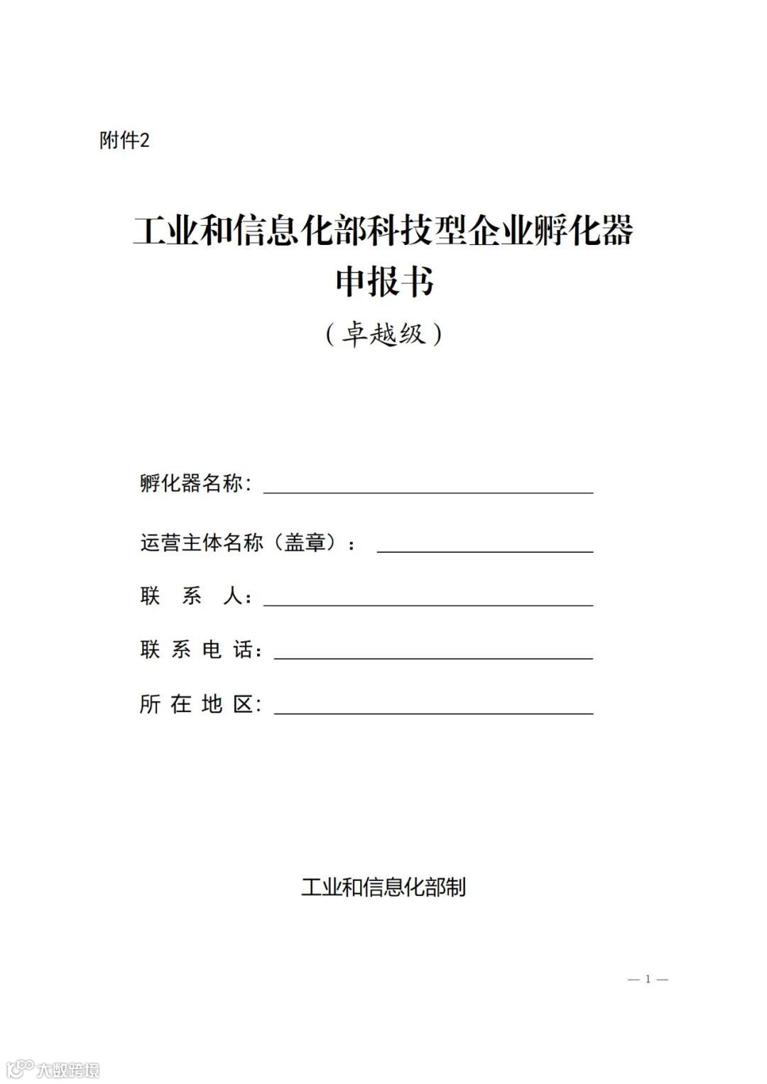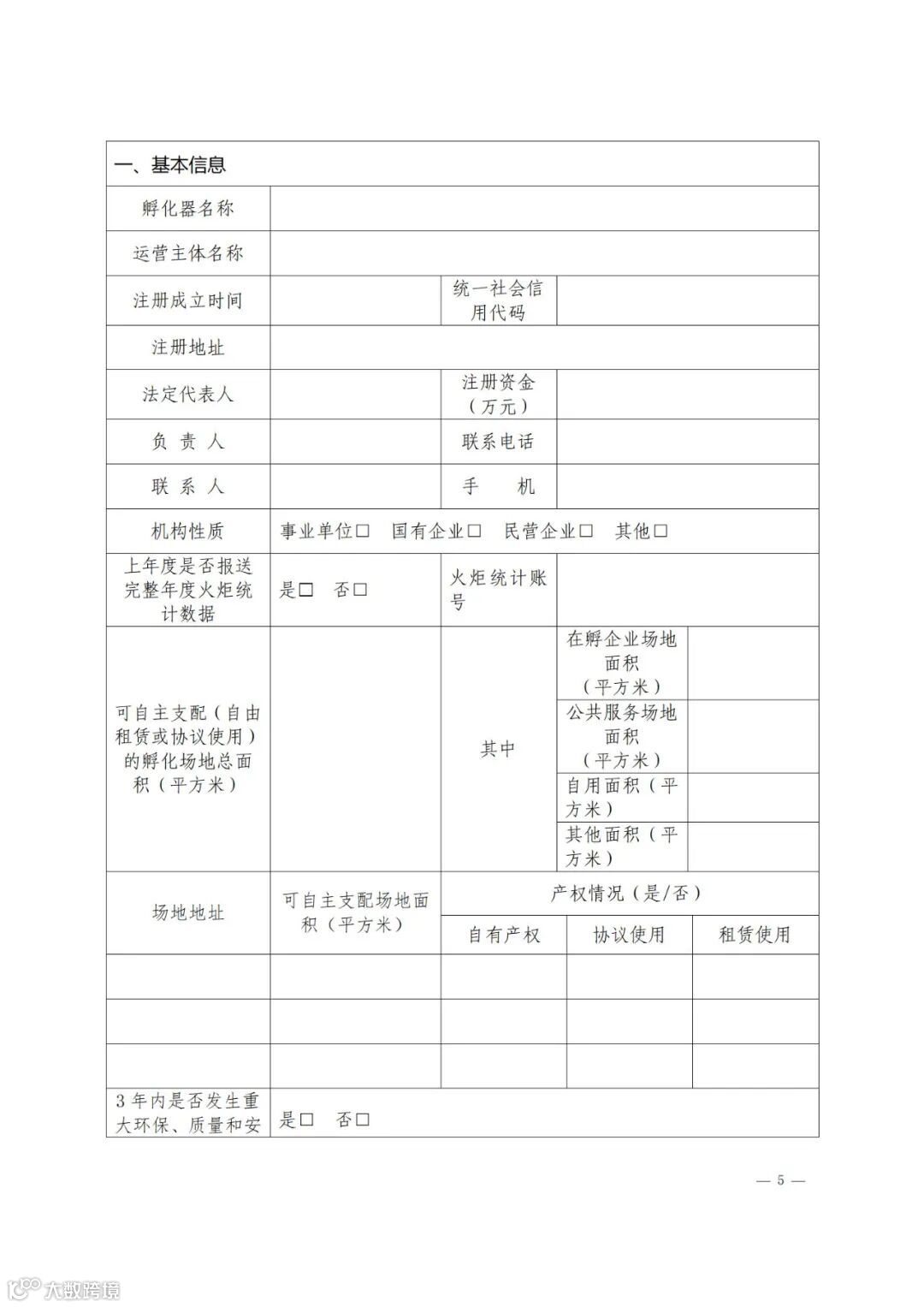 附件:5.工业和信息化部科技型企业孵化器申报书(卓越级)模版