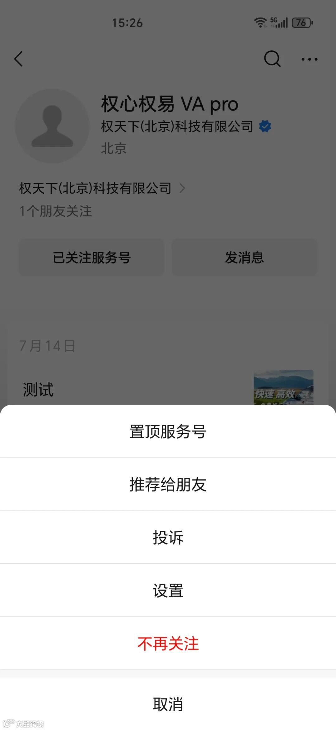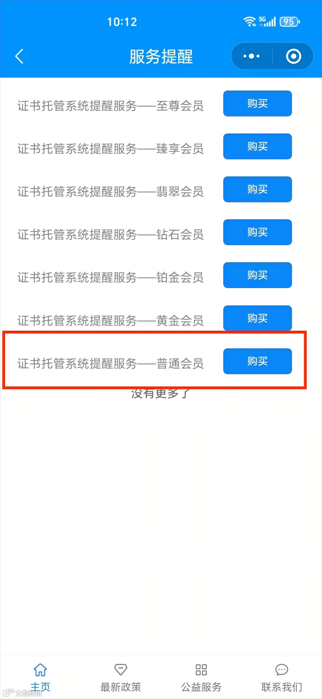 知晟权证书托管系统使用说明第一步:首先,进入微信首页,下拉进入小程序界面,点击搜索。 在搜索框中输入“权天下”,下面看到由“权天下(北京)科技有限公司”注册的小程序,点击进入。第二步:进入小程序后界面找到“会员入口”,并点击进入。授权微信头像、昵称和联系方式,保存。第三步:回到微信页面,搜索“权天下”,选择下方“账号”、“服务号”,找到由“权天下(北京)科技有限公司”注册的“权心权易 VA pro”服务号,点击进入并关注。关注后,点击右上方“…”,“设置”,把消息免打扰关闭,以免接收不到重要通知。第四步:重新返回小程序首页点击“知晟权证书托管系统”,进入购买服务界面。选择需要的服务项目进行购买(试用期间普通会员限时免费体验)。购买完成后会提示您已购买成功,可以等待工作人员与您联系,或者添加联系方式更快地与我们沟通。至此,各位老板已经顺利完成提醒服务的购买,请耐心等待工作人员与您联系进行服务内容的具体对接。注:使用过程中如果遇到问题可以与我们联系帮您解决。