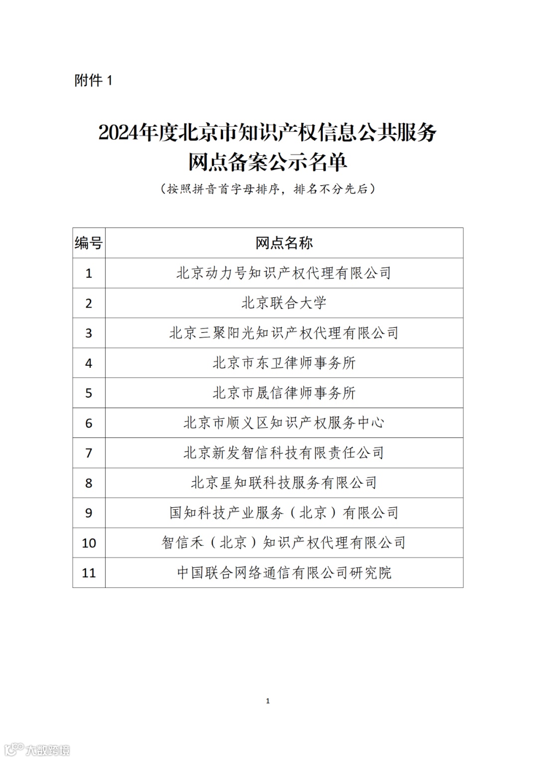 附件:1.2024年度北京市知识产权信息公共服务网点备案公示名单