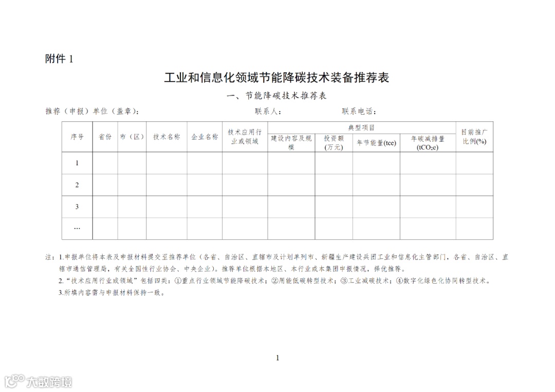 附件:1.工业和信息化领域节能降碳技术装备推荐表