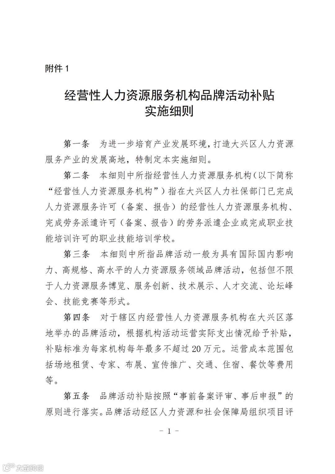 附件1:经营性人力资源服务机构品牌活动补贴实施细则.doc