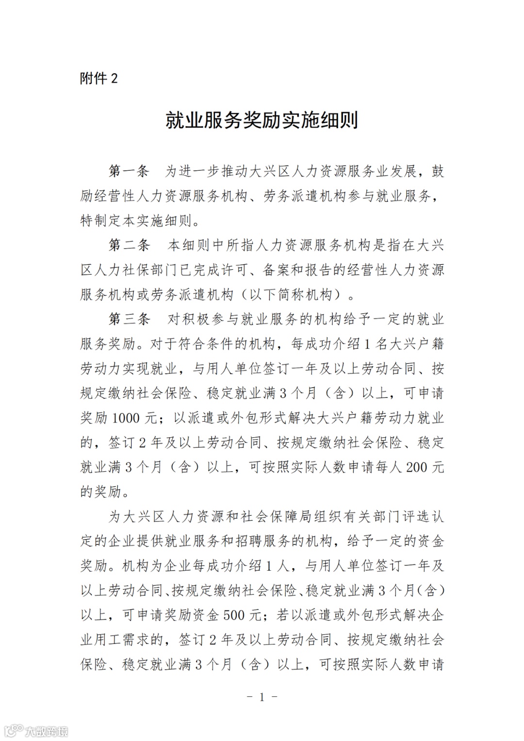 附件2:就业服务奖励实施细则.doc