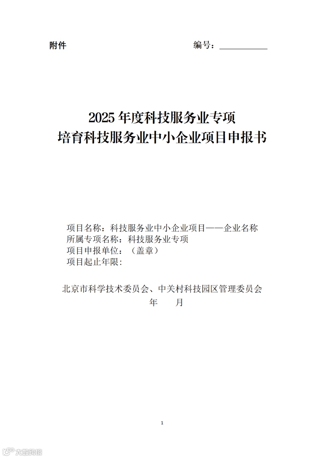 附件:2025年度科技服务业专项培育科技服务业中小企业申报书